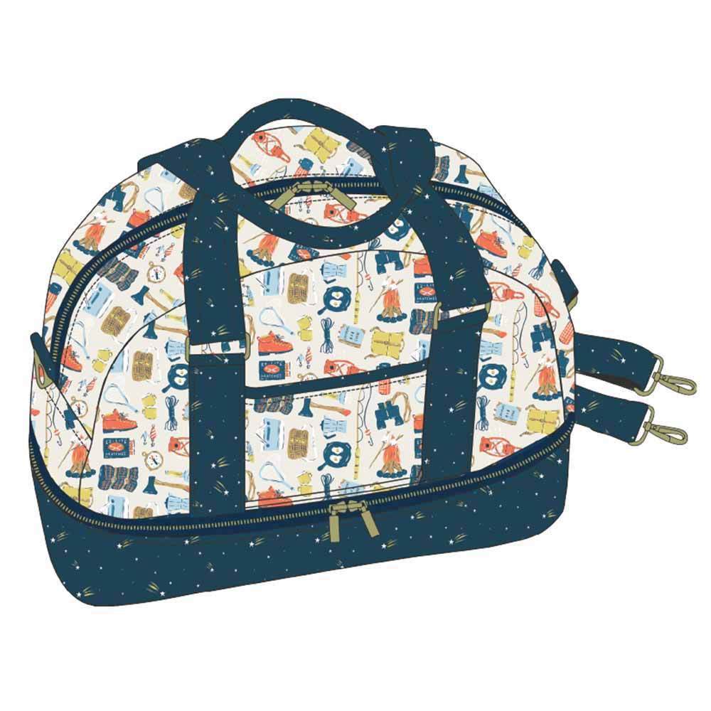 The Townsend is a functional bag ideal for day trips and traveling! Use it as a carry on, gym bag, weekender, doll bag, retreat bag, or however you’d like! The structured train case bottom is perfect for bulky items you want to protect and have easy access to. The finished size of this bag is 16in wide at base, 13in high, and 6in deep. If you are concerned about sewing the train case bottom, try making the entire bag out of quilting cotton first.