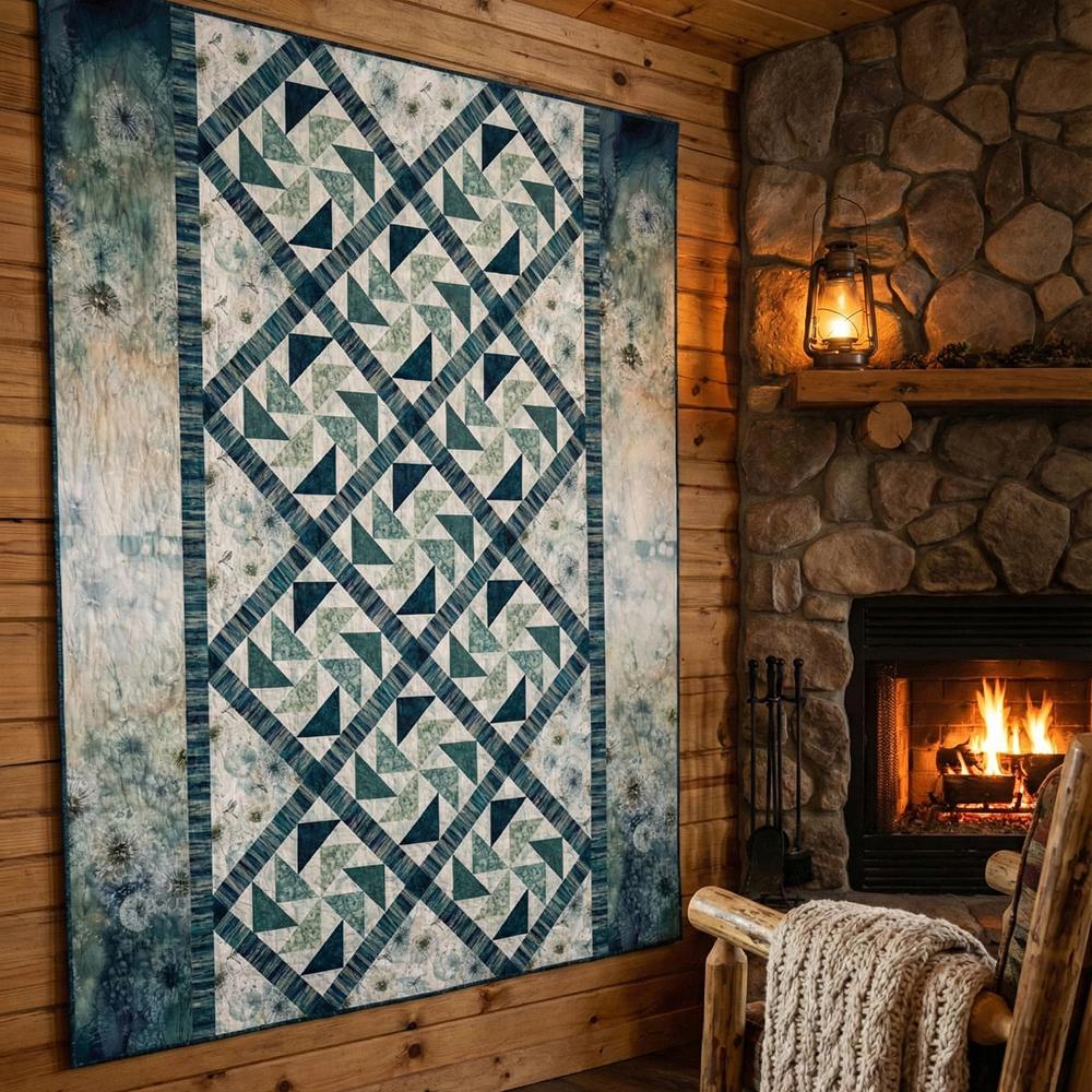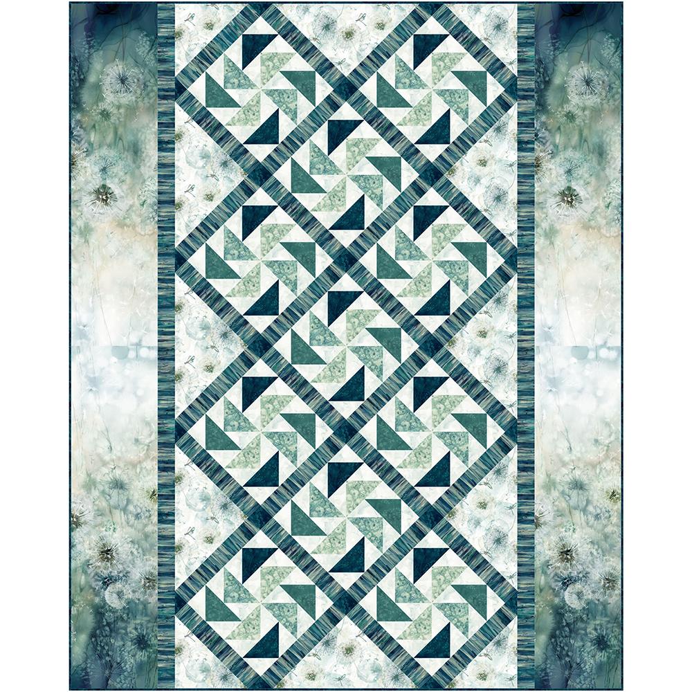 The Whispers of Winter Quilt Kit includes pattern by QuiltFox Designs and all the fabric needed to complete the top and binding of a 64" x 79" quilt. Backing is available separately, 5 yards x 44" wide recommended.