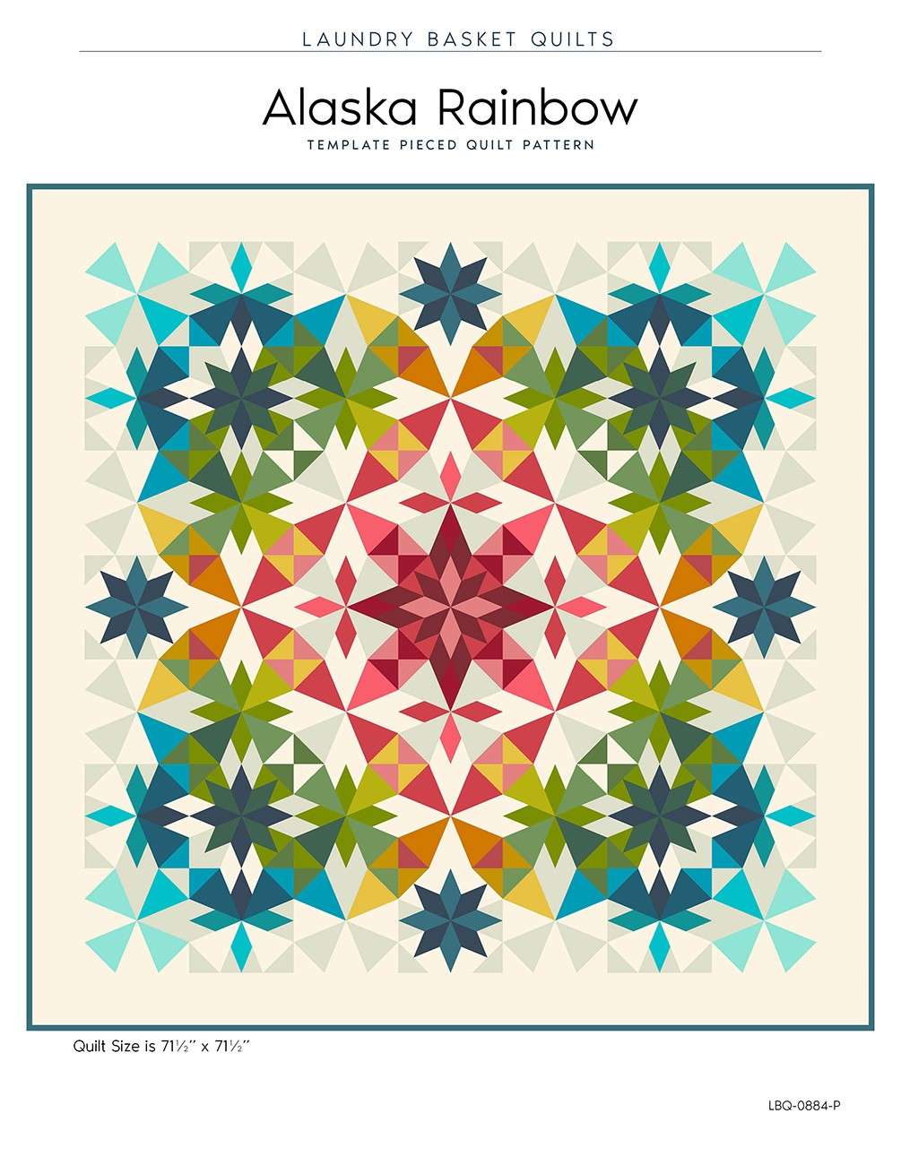 Alaska Rainbow Pieced Quilt Pattern featuring Laundry Basket Quilts' Century Solids fabric collection. Finished quilt size is 71.5in x 71.5in. * Printed Paper Pattern * Final Product: Quilt * Finished Size: 71.5in x 71.5in * Technique: Standard Machine Sewing * Templates included: Yes - Paper Templates * Skill Level: Any Level