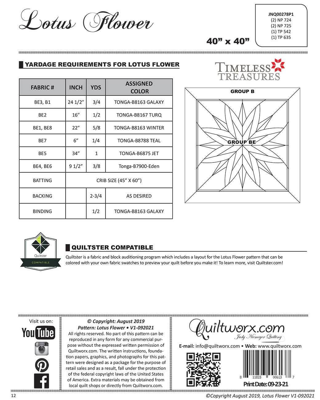 This pattern includes instructions, cover sheet, yardage information & foundation papers. Size 40in x 40in.