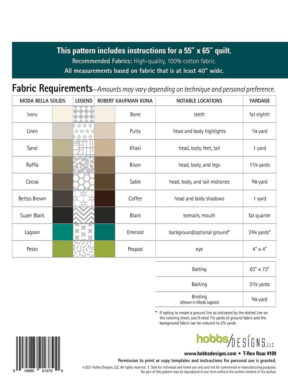 There’s a tyrannosaurus loose! This foundation paper piecing pattern includes full-sized templates and detailed panel assembly diagrams for a 55” x 65” quilt.