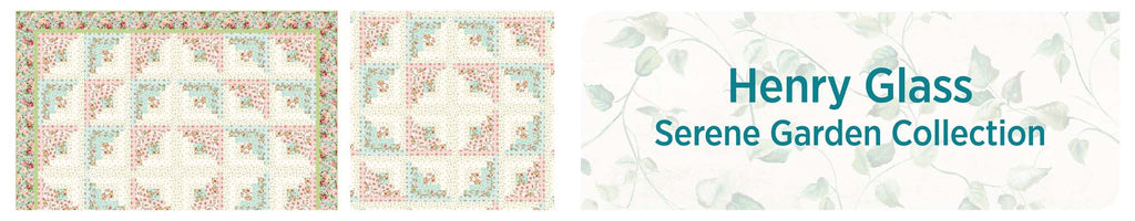 Designed by Mary Jane Carey for Henry Glass, the Serene Garden kit's name says it all. The color palette of aqua, cream, pink and green come together just perfectly to create this lovely floral, cottage-style look.