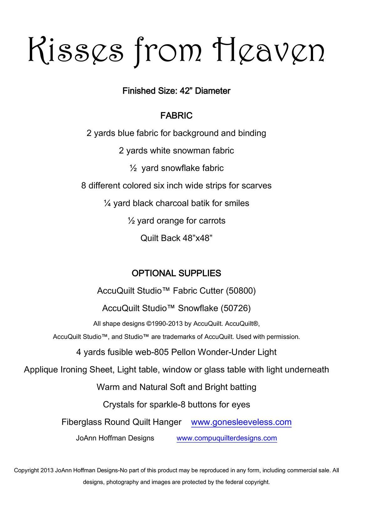 Kisses From Heaven Quilt Pattern by JoAnn Hoffman
