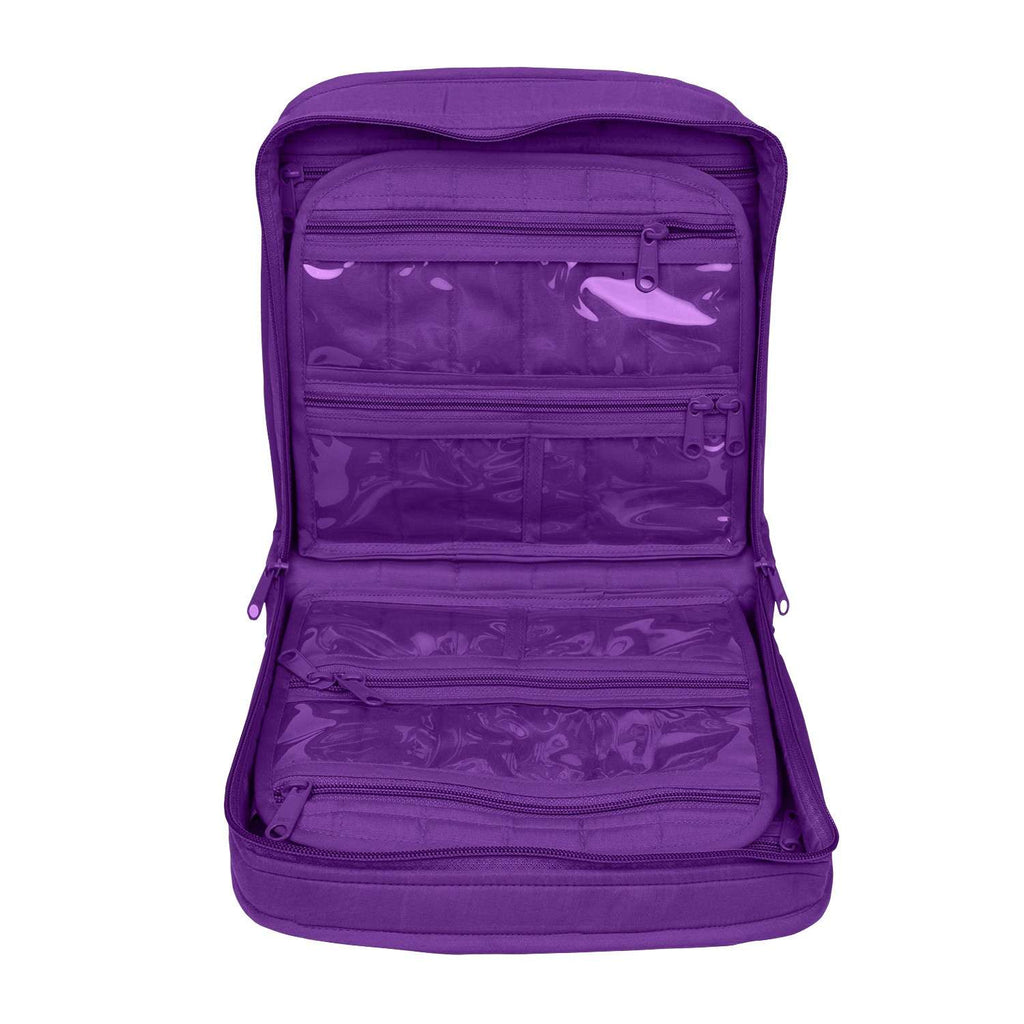 An innovative and well-finished zippered storage idea that is very functional. Perfect for storing all your notions. The see-through panels make identification and retrieval easy. Features an interior with 4 pages of zippered storage. Each page (6 total) have zippered pockets with see-through fronts And center dividers (12 total compartments) .There is a three side zipper to secure the exterior and allow for full opening of the organizer. The exterior has a pocket and short shoulder strap and is completely quilted. 9.25in x 10in
