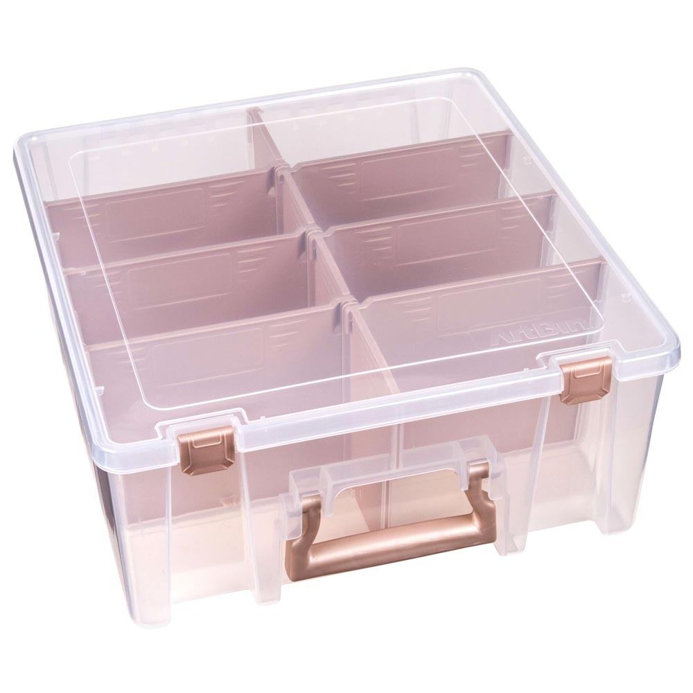 Extra depth allows for storage of larger, bulkier supplies Use “Open Core” (without dividers) for paper and albums or customize up to 8 compartments for multiple storage options including card making supplies, dies, templates, punches and more! Area on dividers accommodates standard size address labels to ID contents Compatible with ArtBin accessories: 6826AG, 6828AG, 6901AB, 6939AB, 6951AB 15.25" x 14" x 6.25"