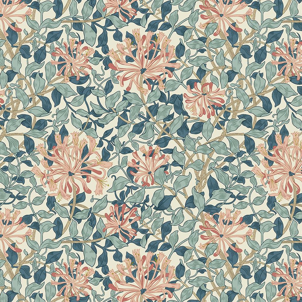 FreeSpirit - The Original Morris & Co. - Honeysuckle - Aqua - Yardage