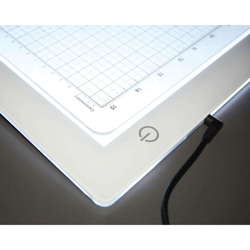 A beautifully-illuminated ULTRA big light table for all your crafting projects, this advanced LED technology offers crafters, quilters, and creators alike a new way to see and engage with a project. The brilliantly-lit work surface illuminates your medium with 3 different levels of light. The Glow Ultra comes standard with a non-slip, self-healing cutting mat and is a larger size, perfect for your fabric projects. When you need a larger light for your project, the Glow Ultra is the light board for you! Glow Ultra - 19in x 26in with 24in x 17in lit area. Includes 19in x 26in Self-healing mat and a A/C 110 V power cord.