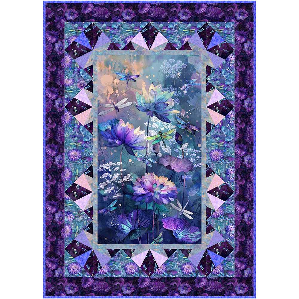 Dragonfly Mist invites you into a tranquil world where delicate dragonflies dance among soft botanicals like lotus and peony blooms, swirling textures, and airy bubbles. The designs evoke the quiet beauty of nature at dusk, in ethereal shades of lilac, plum, purple, green, teal, sea glass, and pink. The Filigree Kit includes pattern by Tourmaline & Thyme Quilts and all the fabrics needed, including panel, for the top and binding from the Dragonfly Mist collection from Timeless Treasures. Finished size of this intermediate project is 45" x 63". Backing available separately, 1-1/2 yards x 108" wide recommended.