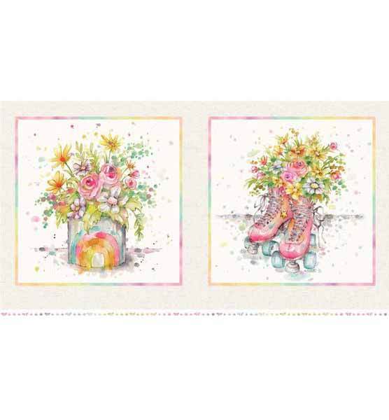 Skate - Boots & Blooms by Wendy Sheppard - P&B Textiles - 24" x 44" Panel
