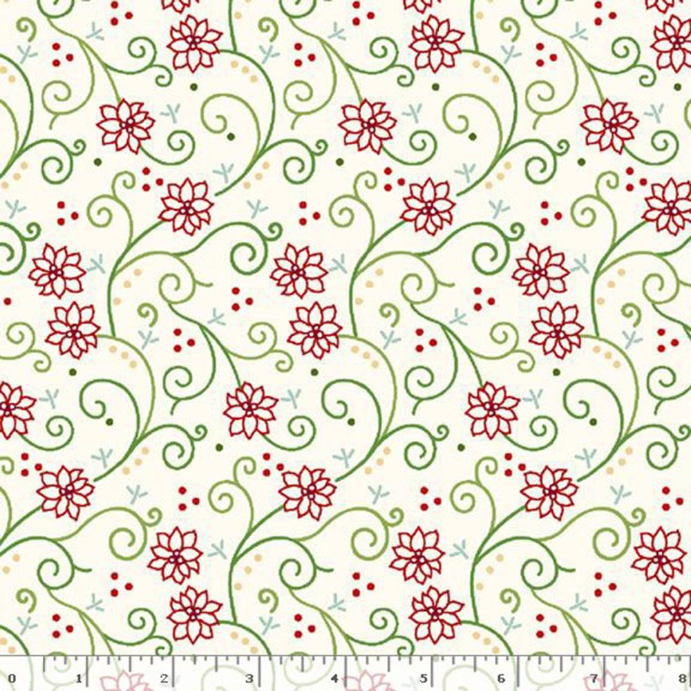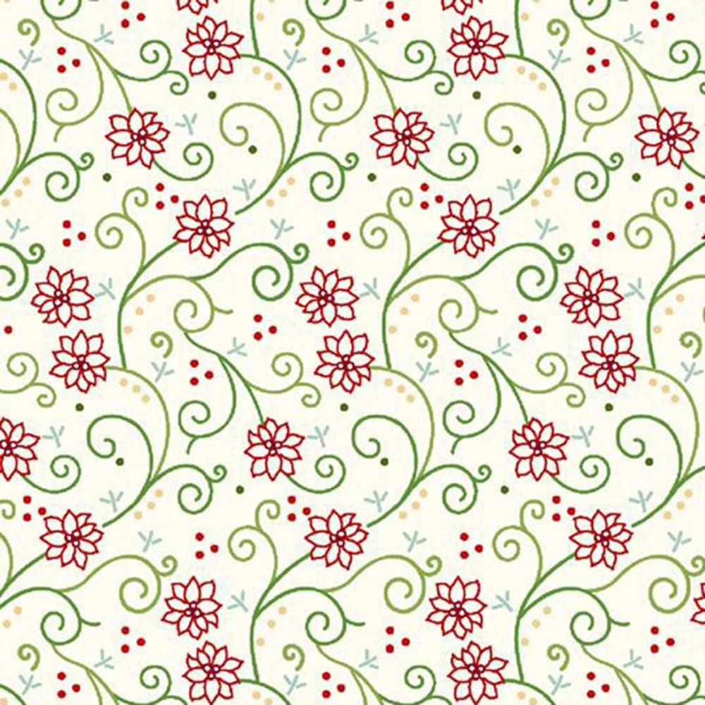 The Swirly Poinsettia 108" wide print in Multi features a delicate vine and floral design perfect for any holiday project. This 108" is from the Peppermint & Pine collection designed by Jennie Jo Lamb for Marcus Fabrics.