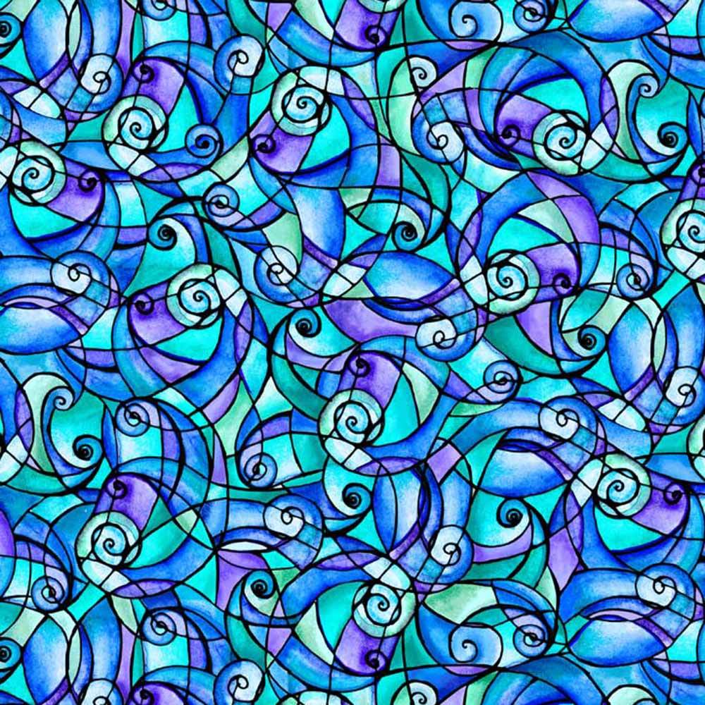 P&B Textiles - Deco The Halls - Jennifer Ellory - Damask - Blue - Yardage