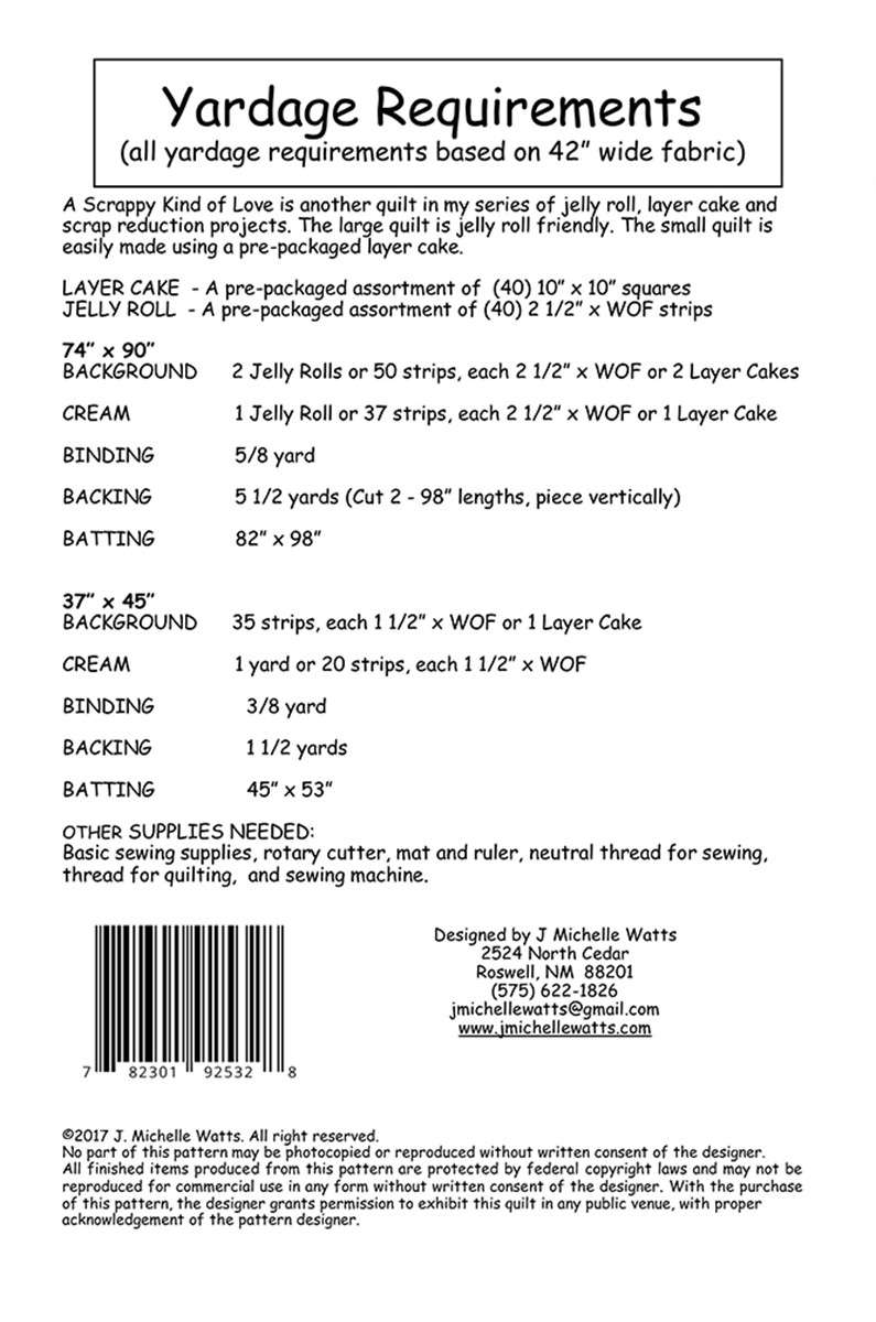 A Scrappy Kind of Love is another in my series of jelly roll, layer cake and scrap reduction projects. Pattern includes instructions for 37in x 45in and 74in x 90in projects.