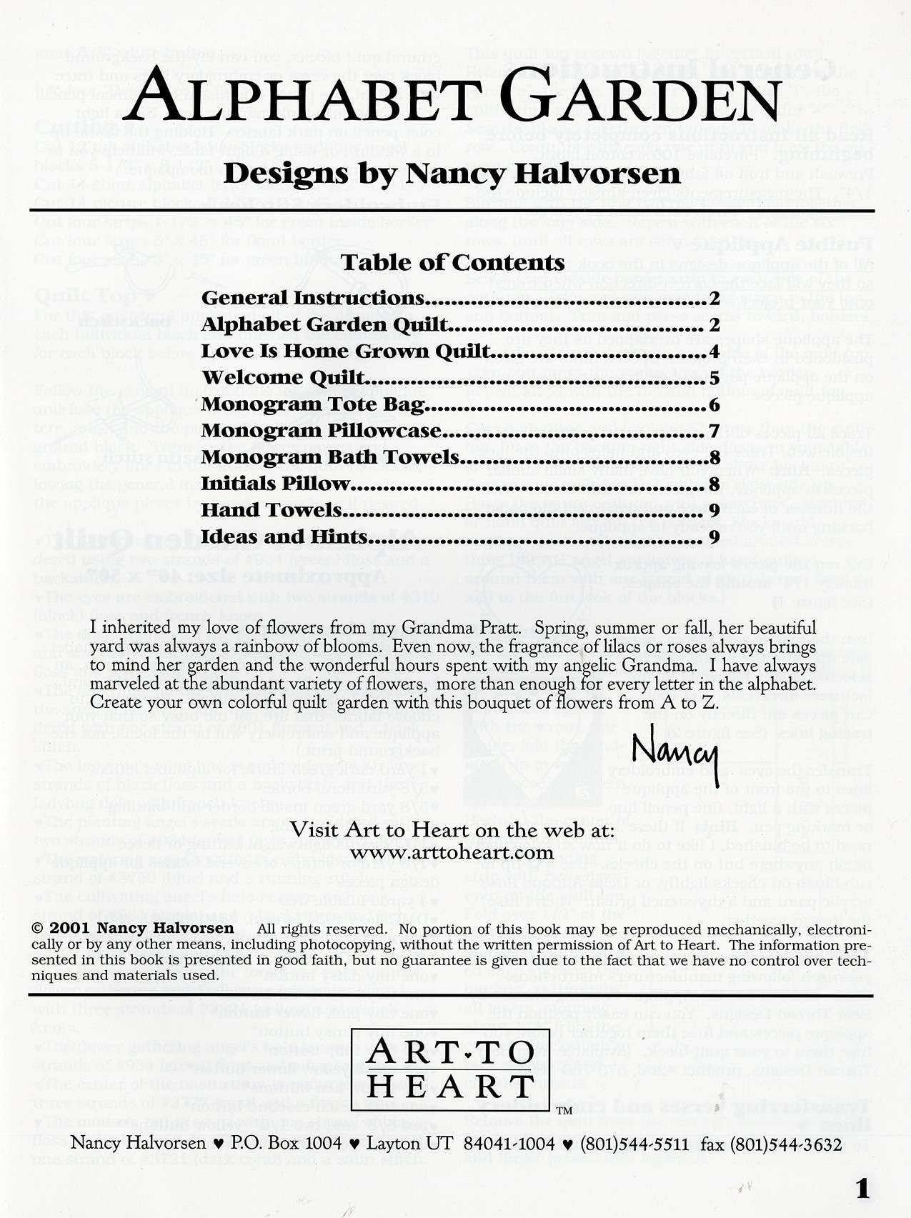 The possibilities are unlimited with this fun flower and garden alphabet book. Patterns for quilts, a tote bag, towels and many more ideas.