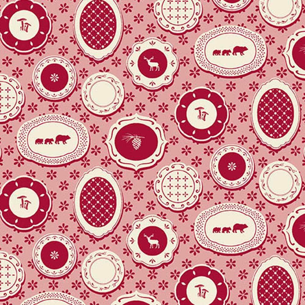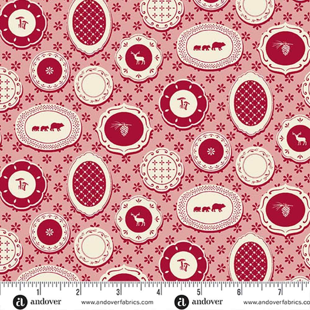Andover Fabrics - A Woodsy Cottage by Judy Jarvi - Plate Wall - Pink - Yardage
