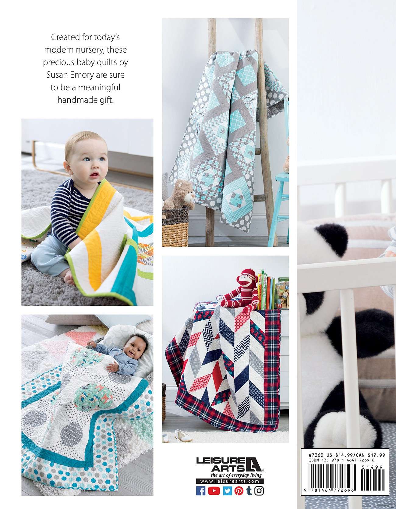 Susan Emory is filling your nurseries with her 7 modern and adorable quilt patterns. Created for today's modern nursery, these precious designs are sure to be a meaningful handmade gift as you play around with the bold and vibrant shapes and stitches. Express yourself using solids or prints in each design, using fun techniques and great color combinations to make each quilt your own. The anticipation of a new baby is the perfect inspiration for a handmade gift, and the best gifts to give are created by you. Designs include Oh Baby, All Aboard, Circus Act, Connect Four, The Places You'll Go, Tiddlywinks, and Whirligig. This book also comes with a bonus pattern online as an extra gift to you!