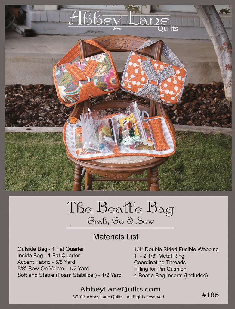 The Beatle Bag is your personalized traveling bag. We use it as a sewing kit, but you could store beads, flosses, make-up or jewelry. Great for all kinds of uses. Want to make more than one, we have extra sets of inserts available also item ALQR186. 11in x 20in. Includes 4 Beatle Bag Inserts.