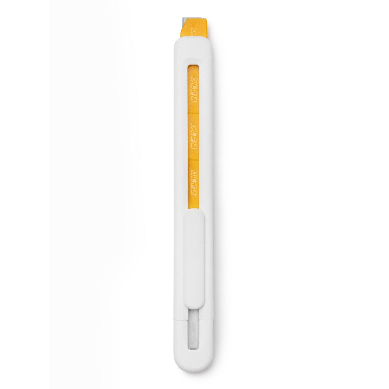 Designed for crafters of all ages, meet the new ESK-1 Beginner Craft Knife. This knife combines high-quality, precision cutting in an easy-to-use handle. The patented design encases each blade segment within plastic to limited blade exposure. This unique design offers safer and more confident cutting for any user.The Beginner Craft Knife utilizes OLFA snap technology packing four-blade segments in one. Simply snap the segment to reveal a new tip. The included stand functions as both the blade snapper as well as a blade disposal container to safely snap and store used blades.Includes knife, one blade, and blade disposal/stand.For right- and left-handed use.