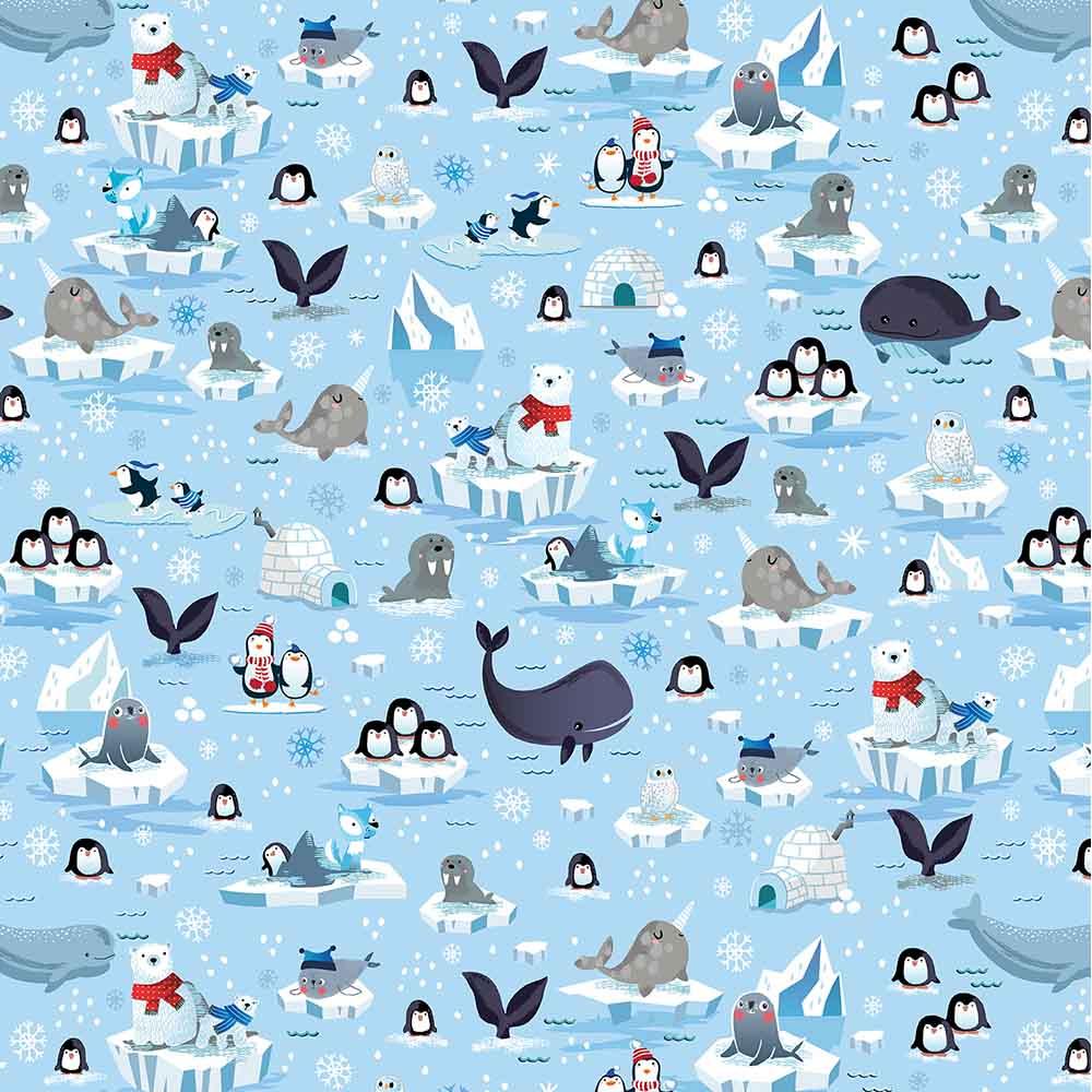 Benartex Fabrics - Arctic Friends - Kanvas Studio - Snow Fun Scenic - Light Blue - Yardage