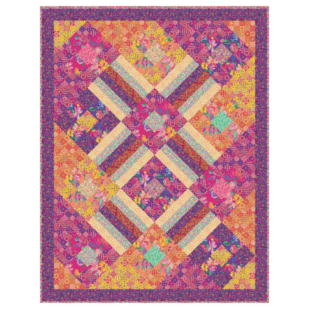 A colorful combination of strip piecing and nine-patch blocks gives this wildflower quilt a cool modern look. Grab all your favorite bright fabrics from your stash to create the Summer Wildflowers Pattern from Benartex Studios.
