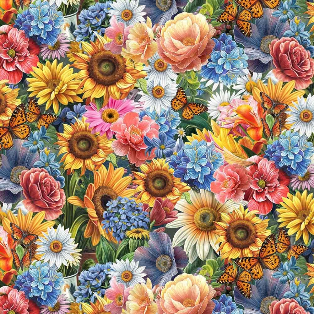 Blank Quilting - Florinda by Francesco Moretti - Digital - Packed Flowers and Butterflies Allover - Multi - Yardage