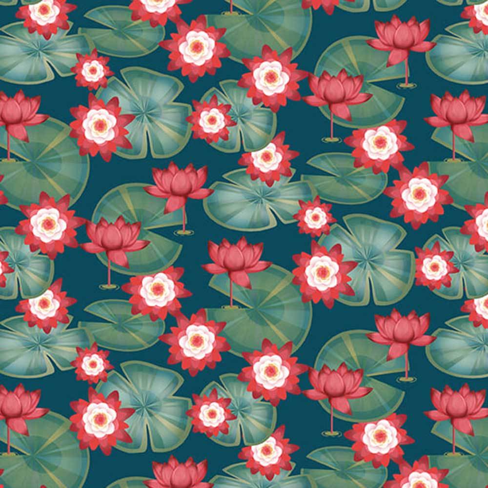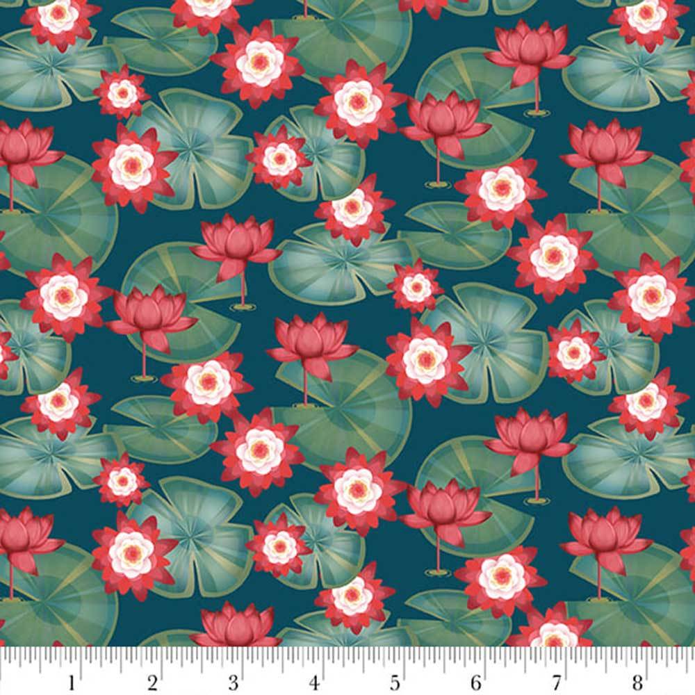 The Lily Pads in Dark Teal print is designed by Bienvenido Colorido for Blank Quilting and is from his Lake Night Serenade collection.