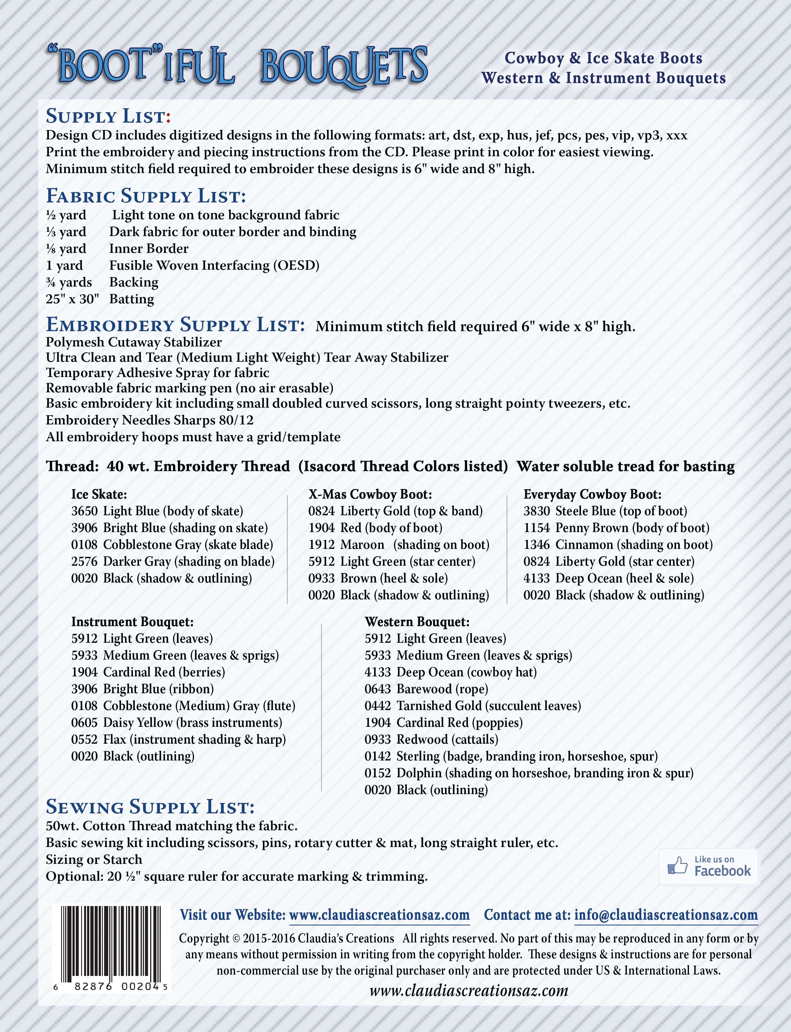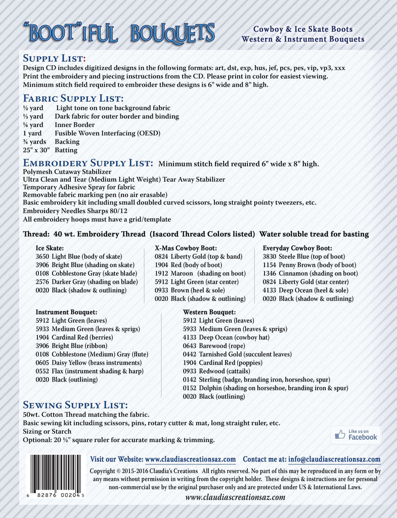 Bootiful Bouquets Cowboy / Ice Skate CD by Claudia's Creations