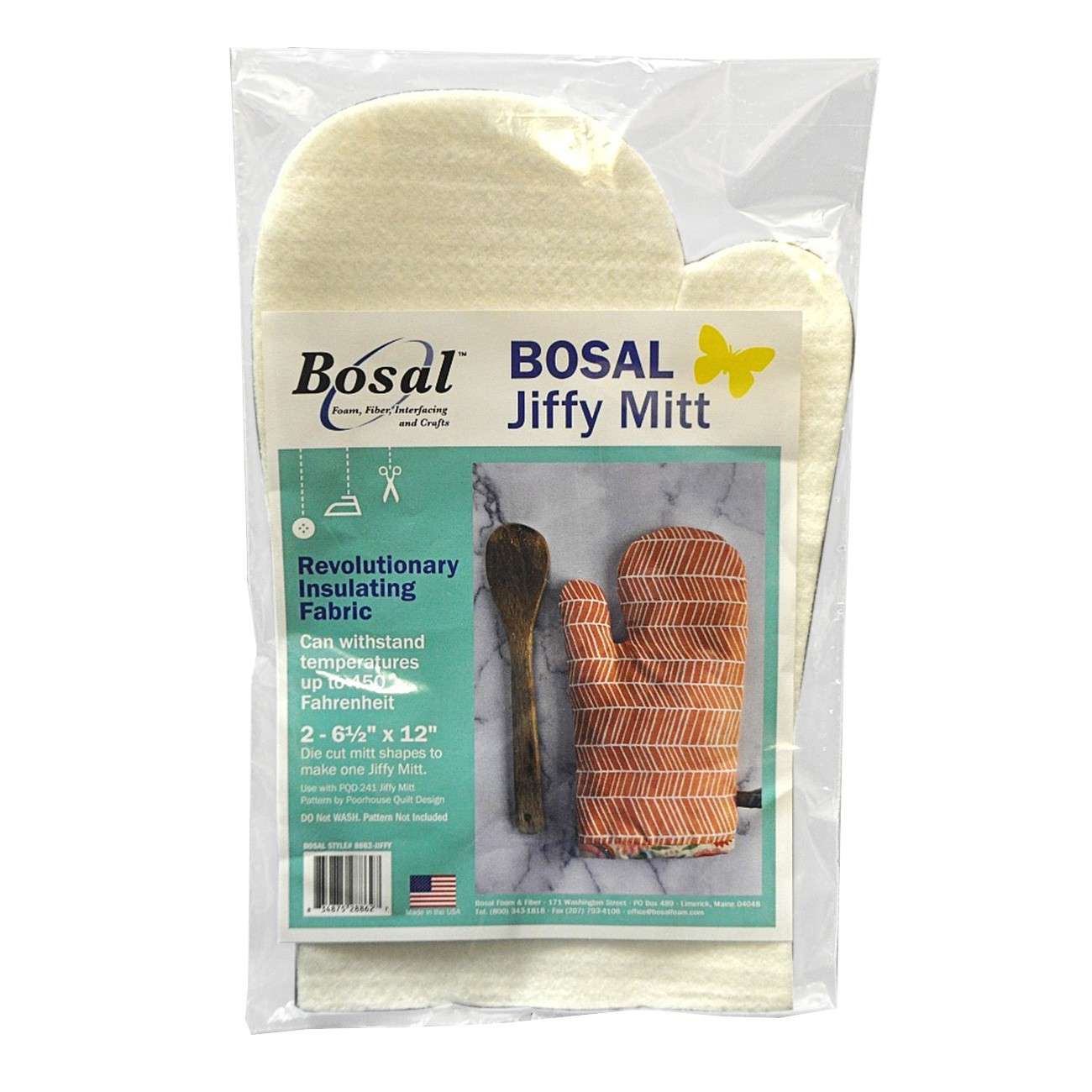 Two die cut mitt shapes of our revolutionary insulating fabric to withstand temperatures up to 450°F to make one Jiffy Mitt! Pattern Not Included