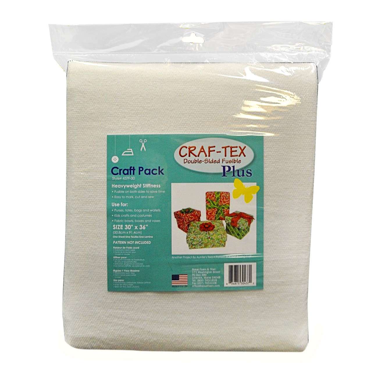 One piece of 30in x 36in stiff nonwoven double-sided fusible stabilizer. Excellent for crafts, handbags, and accessories. Pattern Not Included