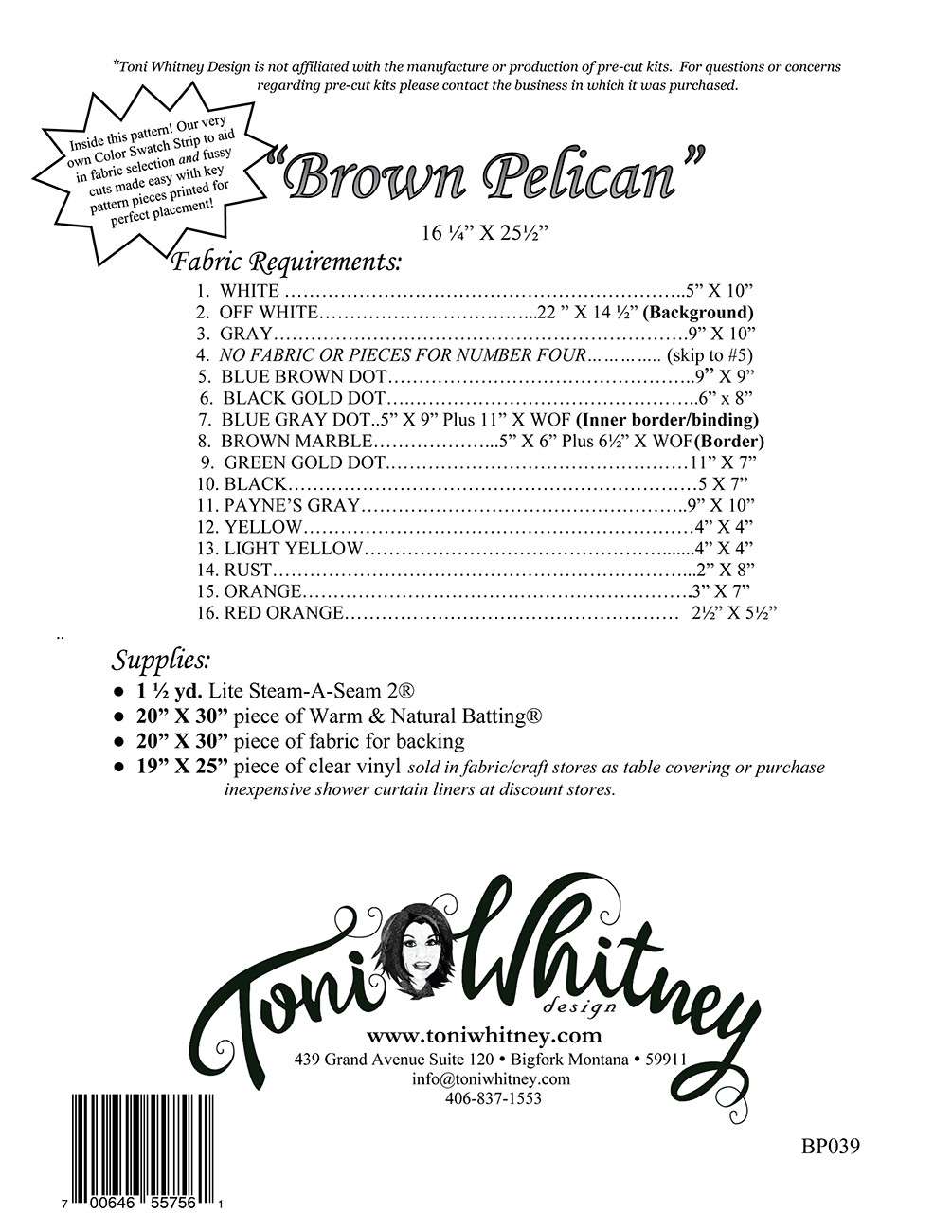 Brown Pelican pattern, finished size 16 1/4" x 25 1/2"