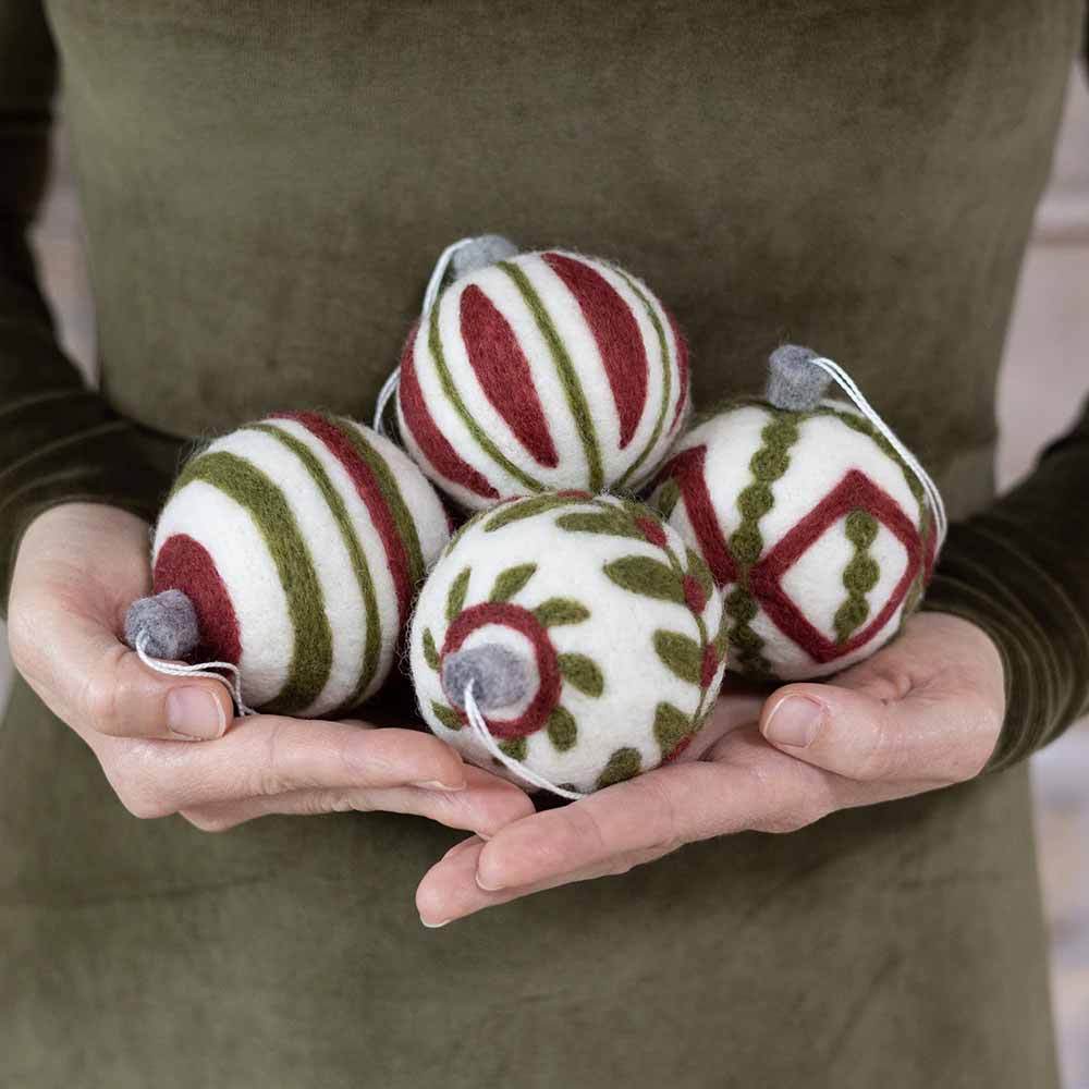 This beginner needle felting project produces four very sweet ornaments. The perfect addition to your DIY holiday decor. This is an excellent first project if you're new to needle felting. The neat thing about this kit is that the wool balls are already formed, so you can jump to the decorating part without having to make the balls from scratch although they will still need to be firmed and smoothed.