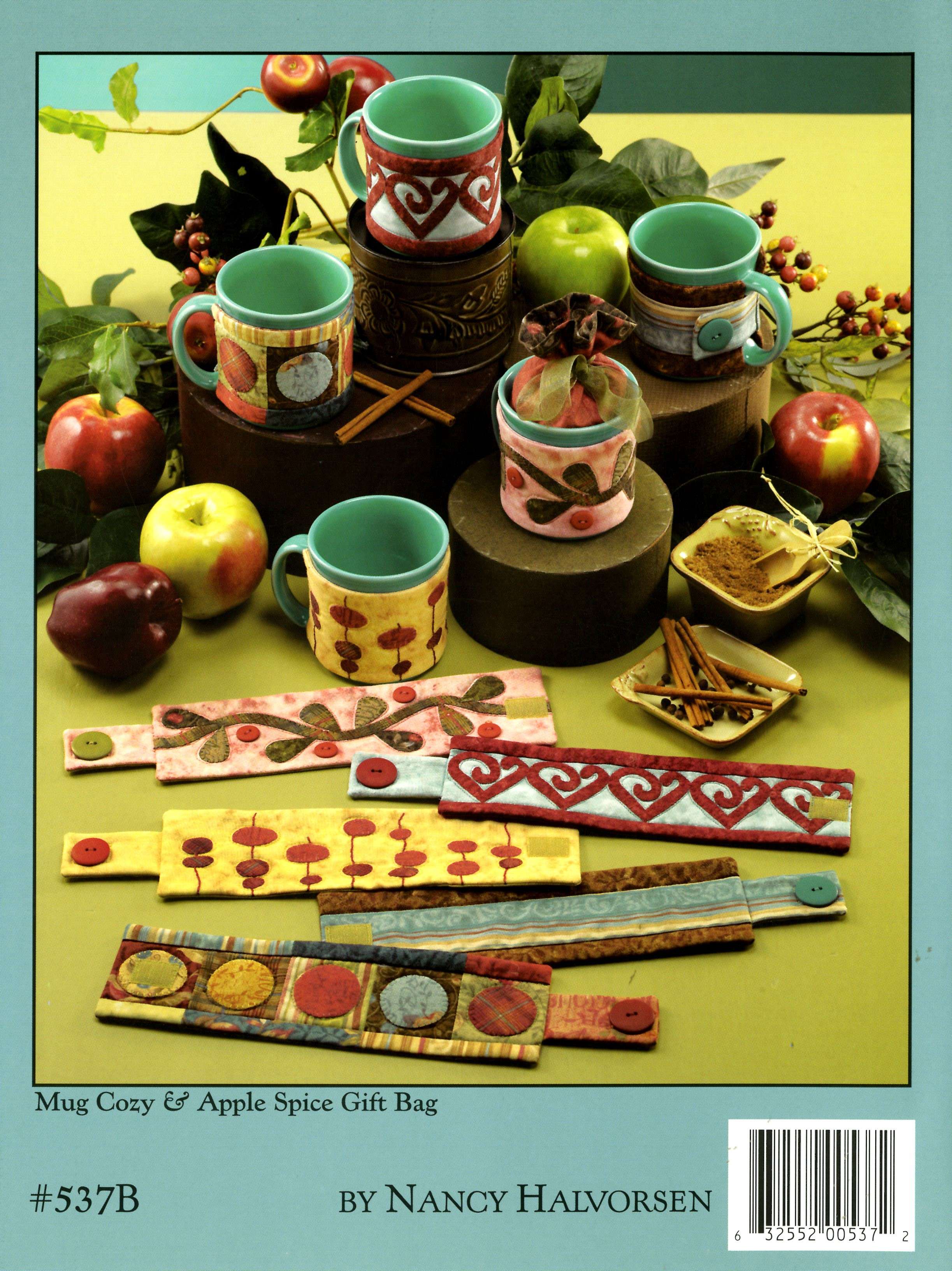 The apple themed projects include: quilts, pillow, table runner, tea towels, table topper, mug cozies, pillows, hot pads, aprons, pincushion, gift bags and more.