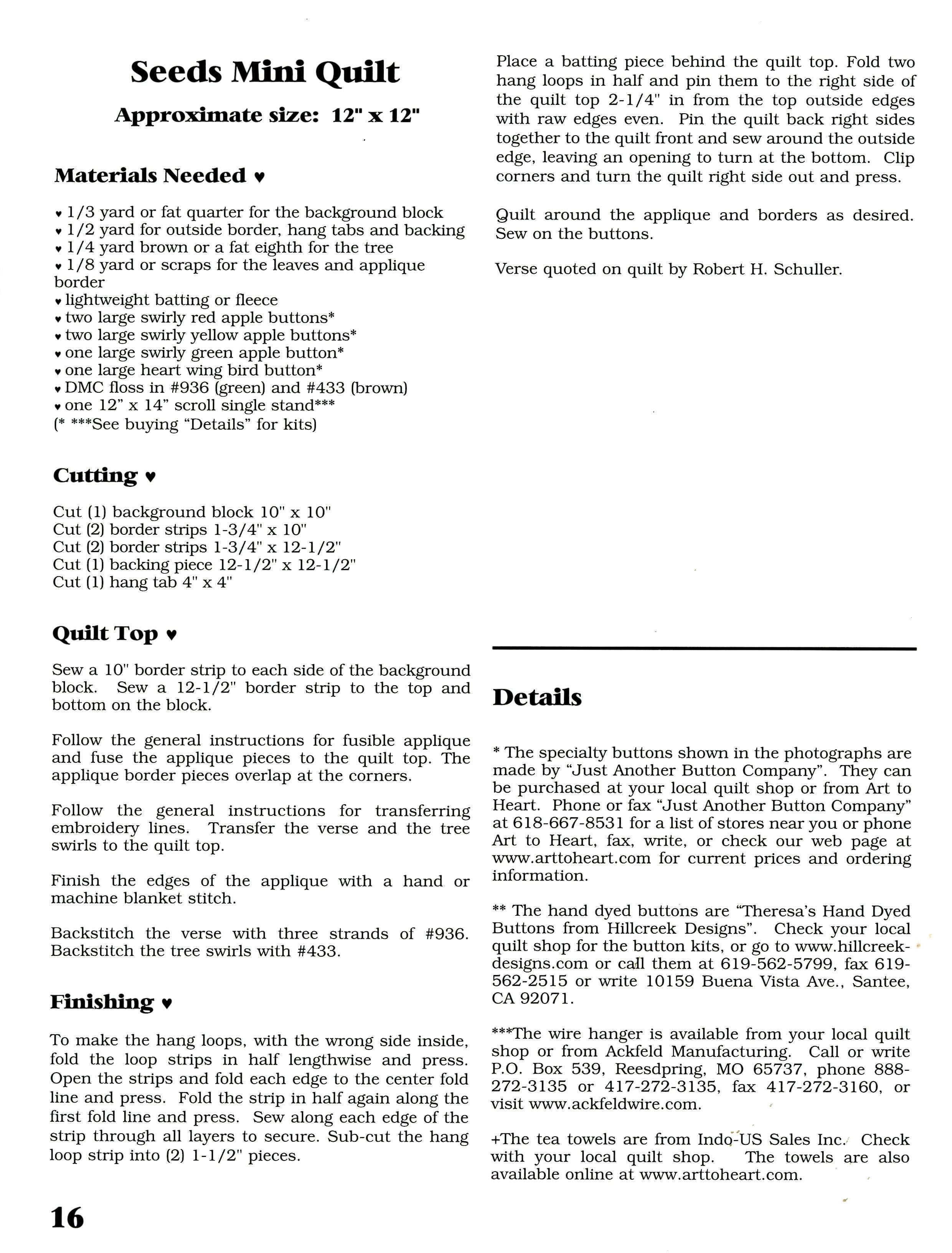 Remember the sweet smell of apple blossoms and tangy cider. Take a walk down the Cider Mill Road. Enjoy and share these delightful and easy projects!