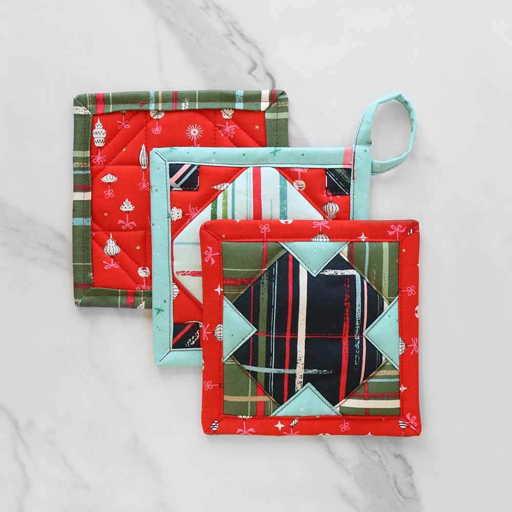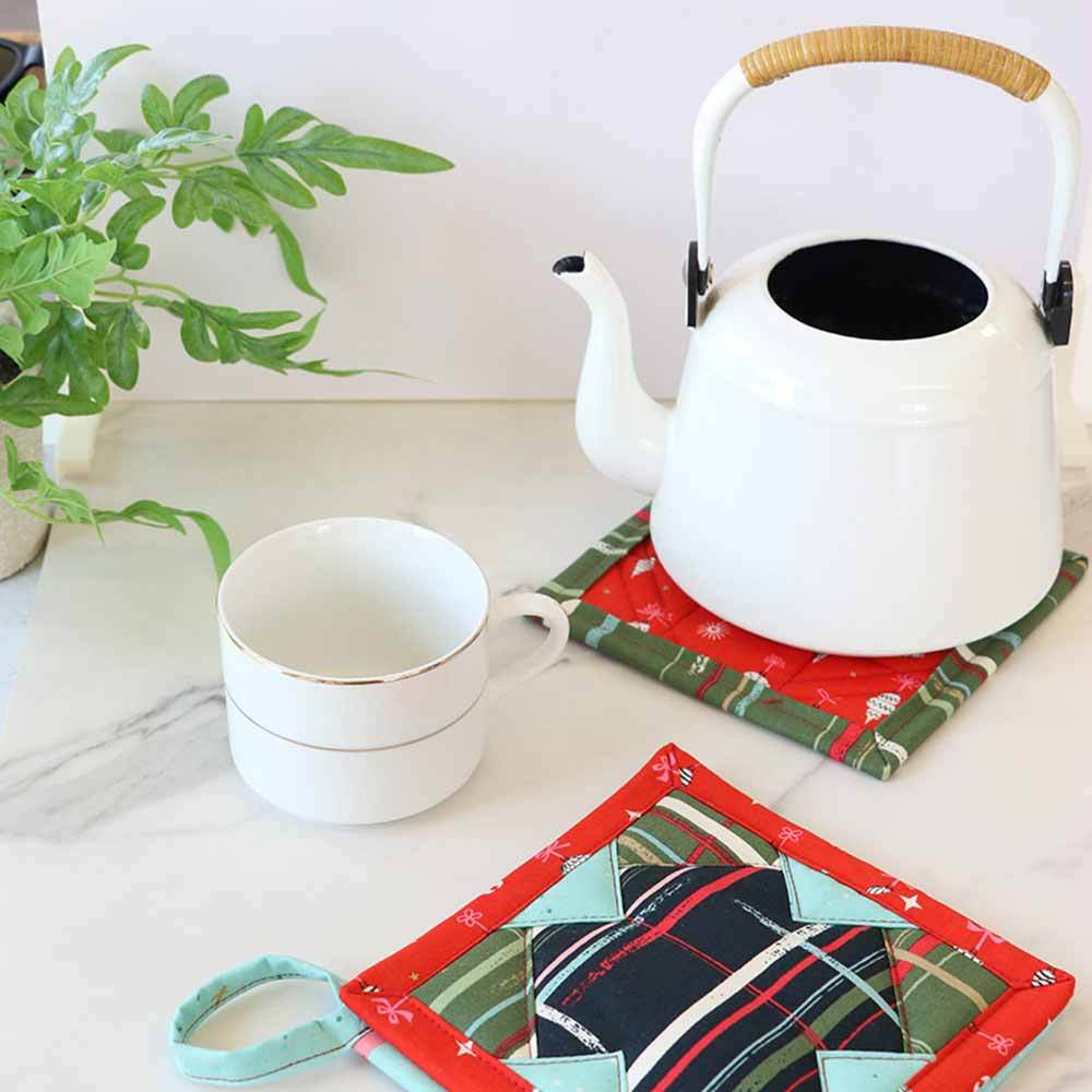 The guardian angel in the classic movie, It's a Wonderful Life, inspired the old-fashioned charm in the Clarence hot pads pattern. Create a cushion for mugs of coffee or soup with easy faux patchwork. A fun, quick-to-assemble project for last-minute decorating or gift-giving! Finished Size: 6"" Wide, 6"" High