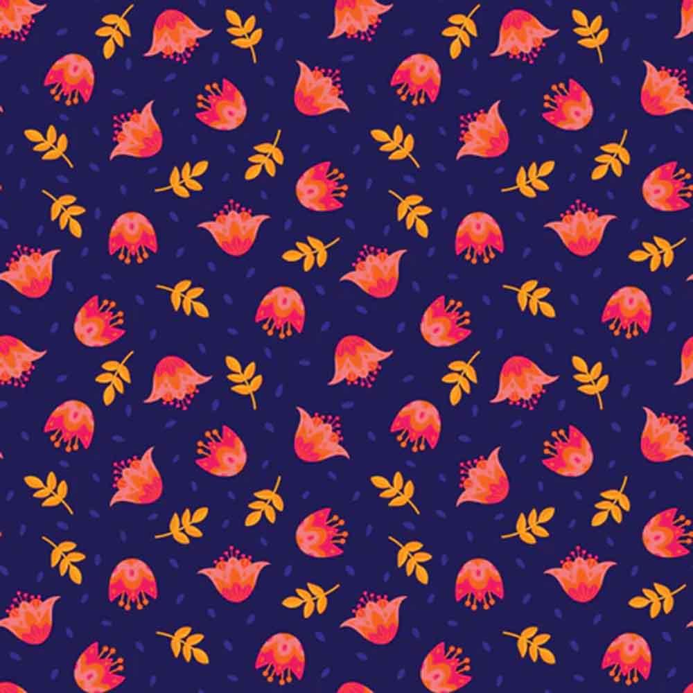 Think flowers in full bloom and the true magic of a garden. Designed by Johanna Homolka of Jojulein Design, the organic cotton Flower Dance print in Navy is from her Blooming Garden collection for Cloud9 Fabrics.
