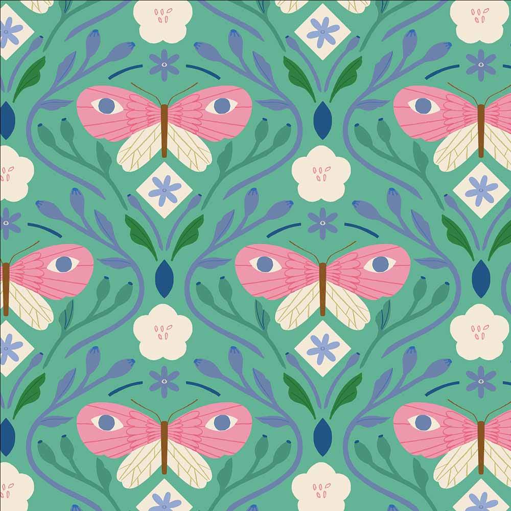 Cloud9 Fabrics - Life Of Plants By Di Ujdi - 100% Organic Cotton - Wings & Petals - Turquoise - Yardage