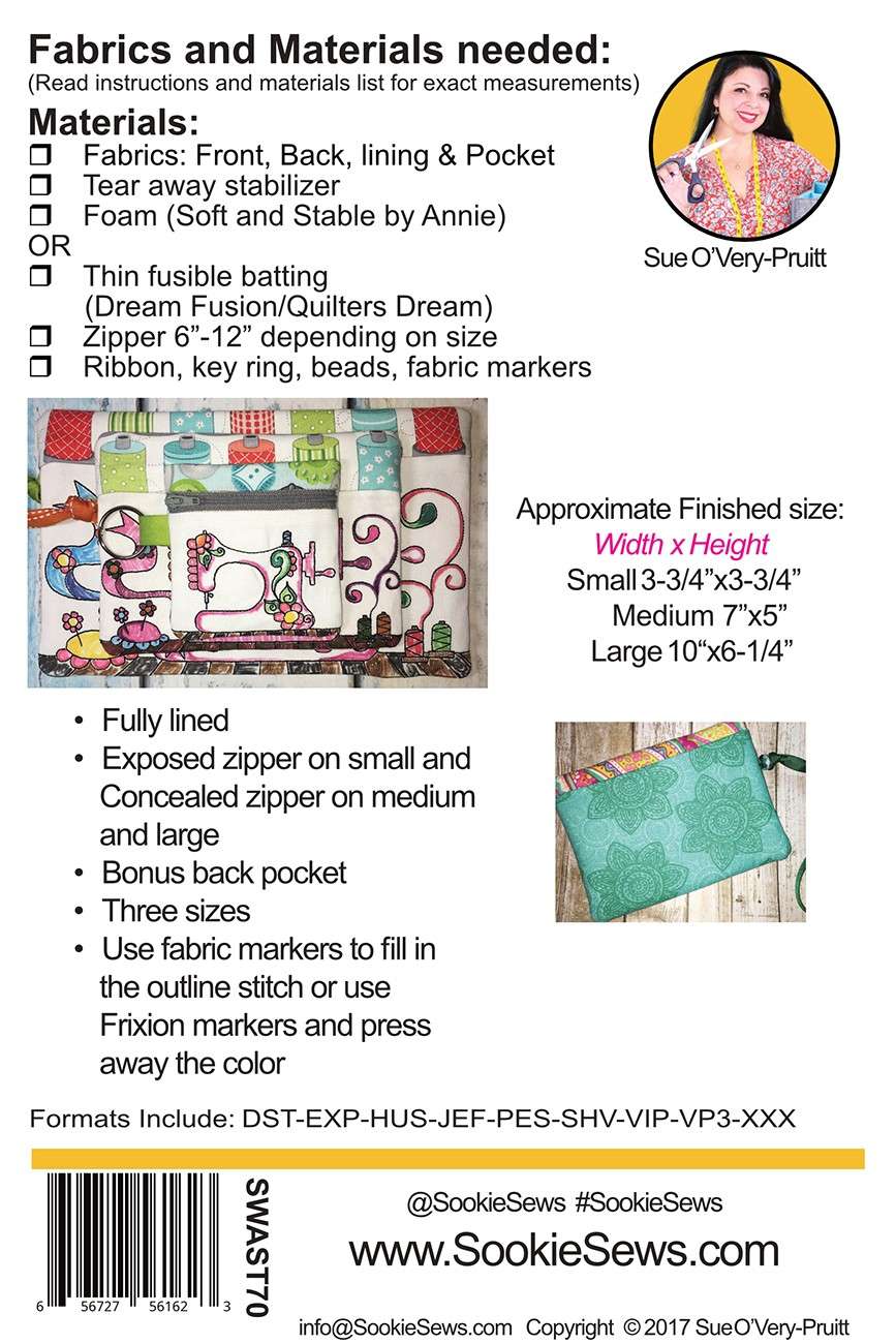 Coloring is both a relaxing and creative hobby. No matter the age, everyone can color and most importantly, feel like an artist. This machine embroidery design is made entirely In The Hoop, ITH. It's a fast and fun way to express your unique creative side. The bags are constructed entirely in the hoop, including zipper insertion, back pocket, optional strap and it's fully lined. Only a little hand stitching required. Designs included come in three (3) sizes, requiring an embroidery machine using these size hoops or larger: 4in x 4in, 5in x 7in and 6in x 10in. Bag finished dimensions are: Small 3-3/4in x3-3/4in,