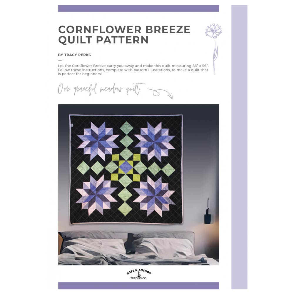 Let the Cornflower Breeze carry you away and make this quilt measuring 56” x 56”. Follow these instructions, complete with pattern illustrations, to make a quilt that is perfect for beginners!