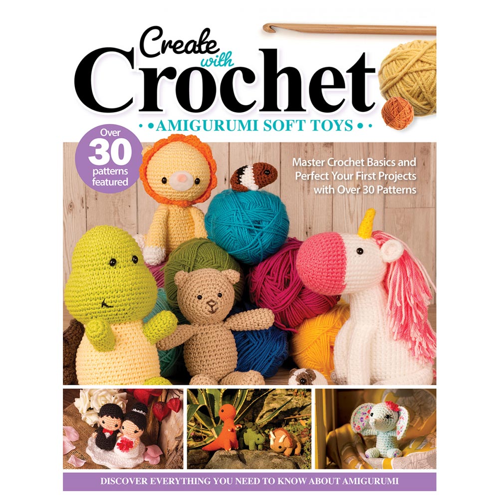 Create with Crochet: Amigurumi Soft Toys, an introduction to Japanese amigurumi, begins with guidance on choosing a yarn, different crochet stitches, working on tension, fixing mistakes, and reading a stitch pattern. It continues with 29 adorable amigurumi patterns for you to create including a teddy bear, prairie bunny, unicorn, triceratops, a mouse, and more! Each project is marked on a star difficulty rating, so you can pick and choose the projects based on your skill level. Each project also includes the name of the designer, the difficulty level, the appropriate hook and yarn, measurements, the approximate amount of time it will take to complete the projects, and the stitch pattern.
