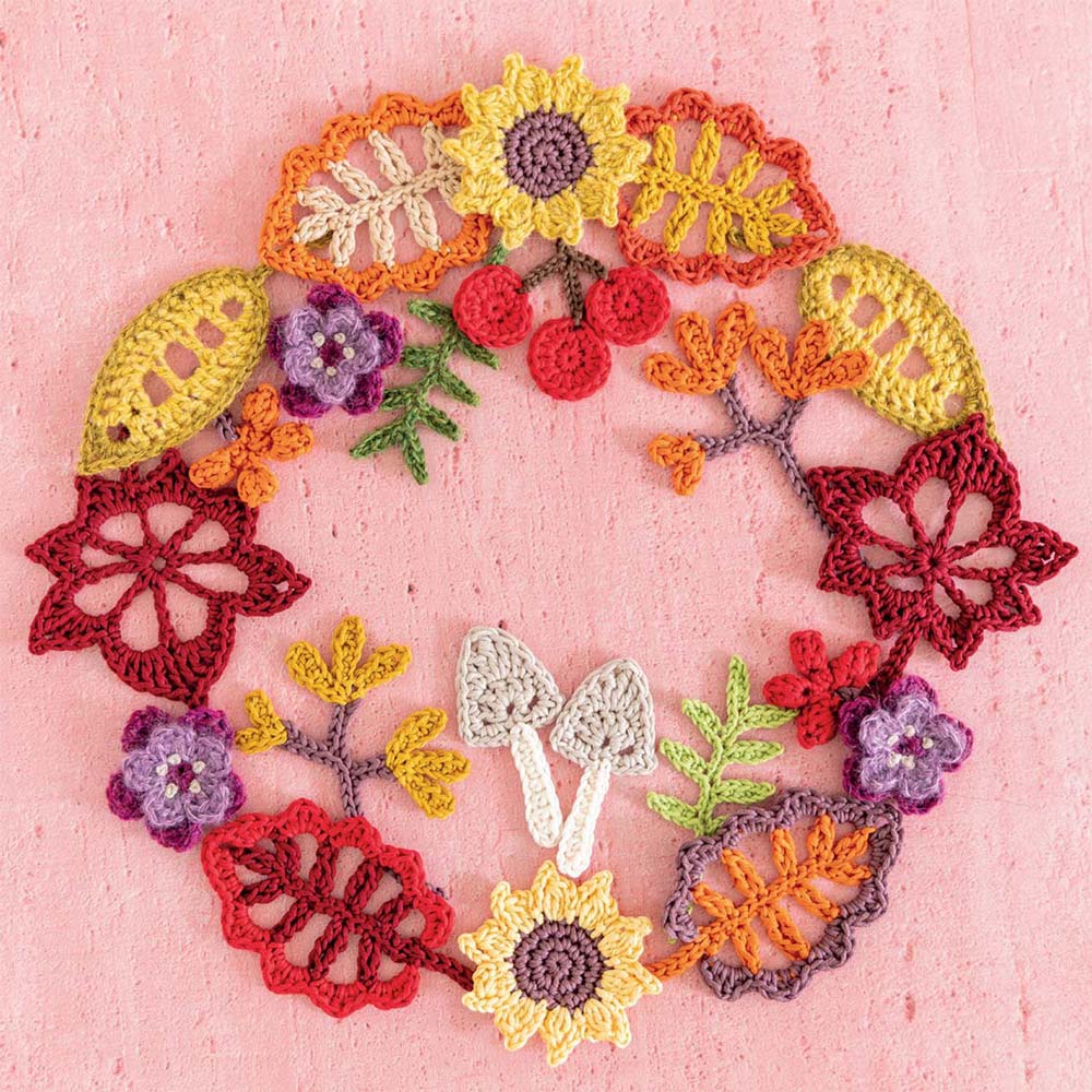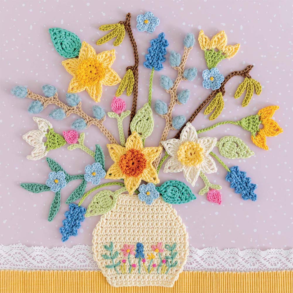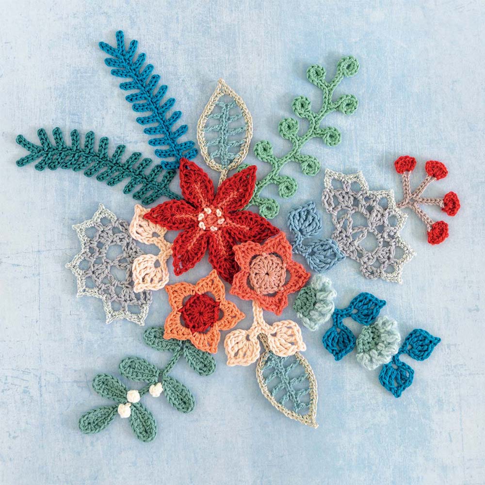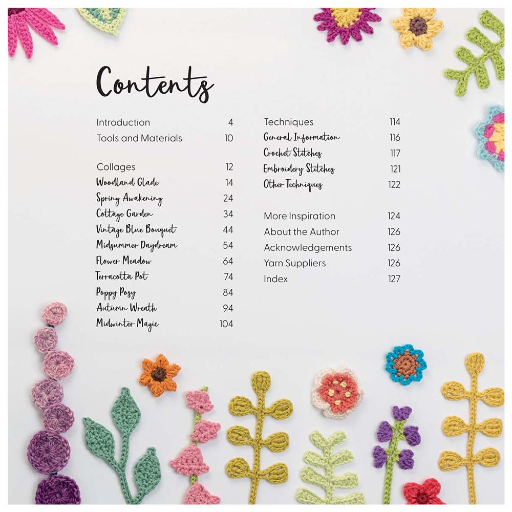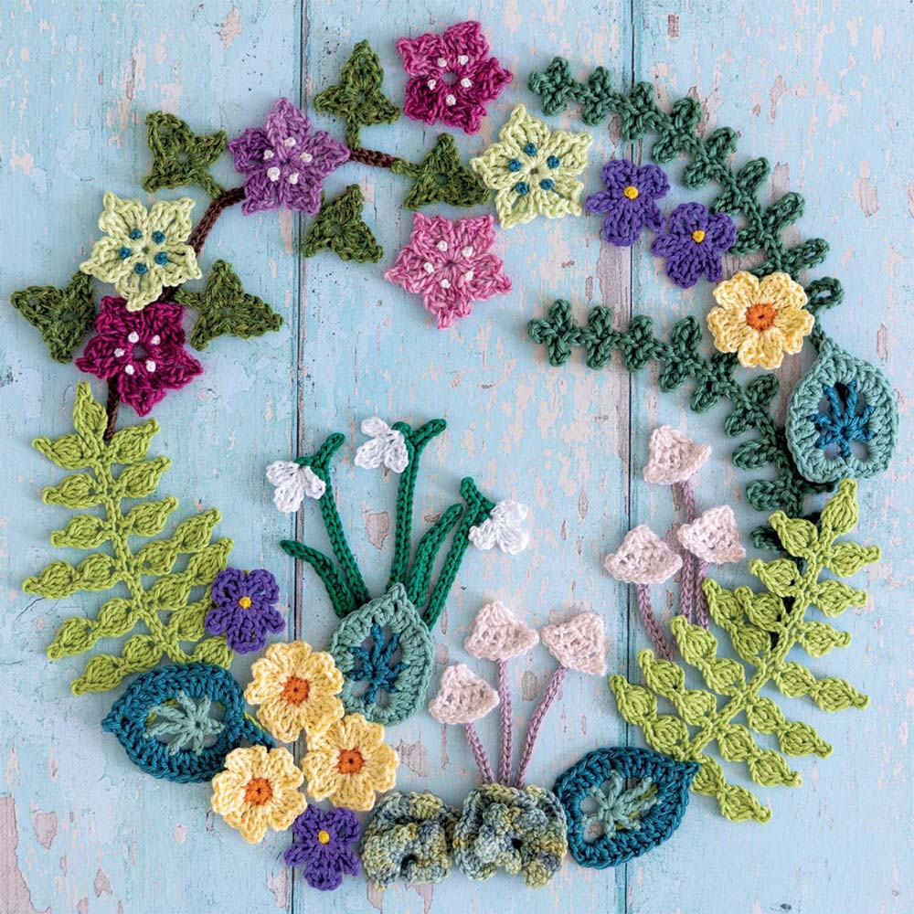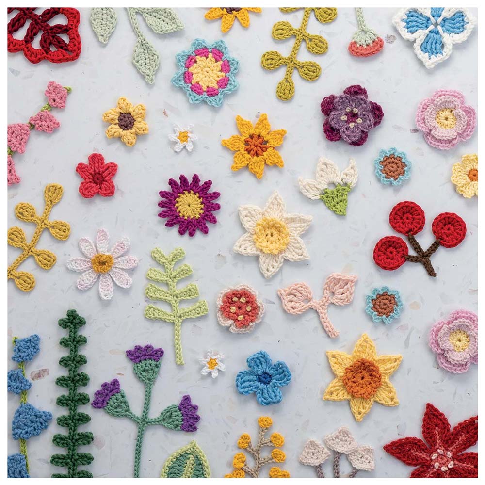 Crochet designer and gardener, Chris Norrington has created 100 crochet motifs arranged in 10 collages based on the beautiful flowers and plants found in her wonderful cottage garden on the edge of the beautiful North York Moors National Park. All of the motifs are inspired in some way by Chris' garden and the collages roughly follow the pattern of the seasons from the first flowers in spring, through to the frosty leaves of winter. The motif designs are inspired by the colors and shapes found in nature and, while some are recognizable as specific plant species, they are not intended to be botanically accurate representations of particular plants.