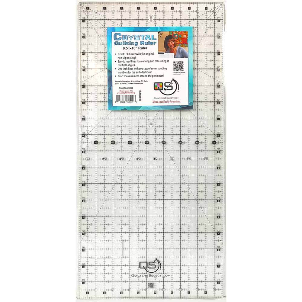 Enhance your quilting precision with this crystal clear non-slip ruler, measuring 8-1/2 inches by 18-1/2 inches. Designed for both professional and hobbyist quilters, this ruler features a grid pattern with precise measurements, ensuring accuracy in every cut. The non-slip feature provides a secure grip, preventing slippage during use, while the clear material allows for easy alignment over your fabric. The ruler includes both inch and centimeter markings, along with diagonal lines for bias cuts, making it versatile for various quilting projects. The back of the ruler displays detailed instructions and a vibrant image, emphasizing its utility and ease of use.
