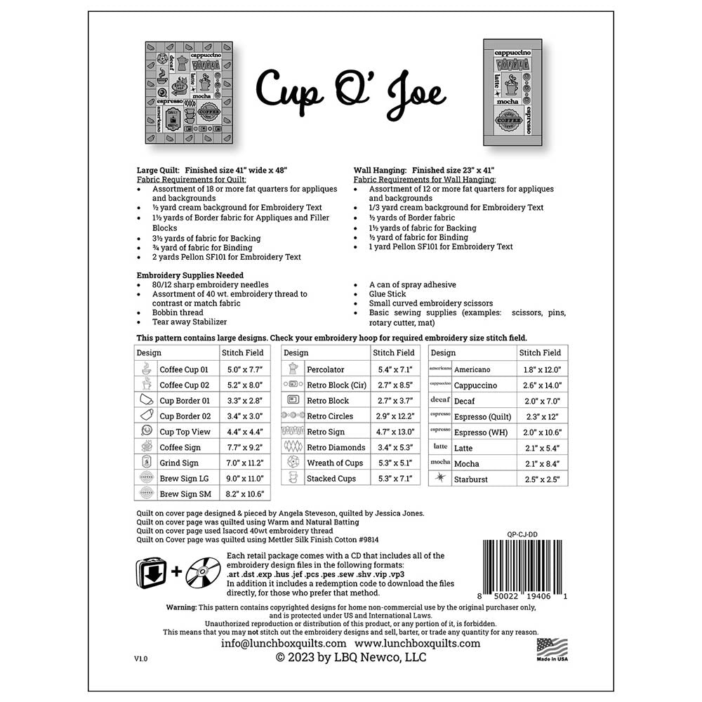 Cup O' Joe Applique Machine Embroidery Quilt Pattern