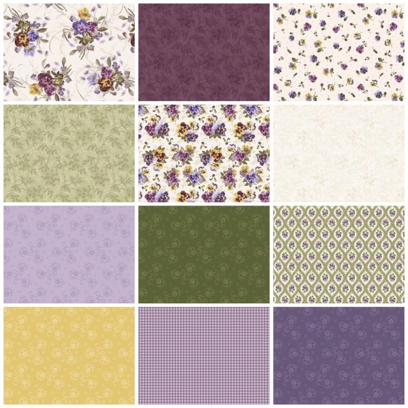 Marcus Fabrics drew inspiration from the archives of the Smithsonian Institution to create the Dandy Pansies collection. Based on an 18th century French Wallpaper, the beautiful pansy blooms are executed with artistic detail and colored in shades of purple, pink, green, cream and a bit of yellow. Kit includes pattern from Marcus and all the Dandy Pansies fabrics for the top and binding of an 89" x 89" quilt. Backing available separately, 8 yards of a 44" or 3 yards of a 108" are recommended.