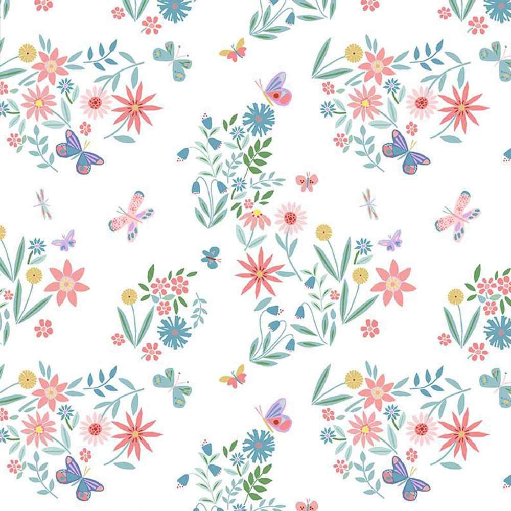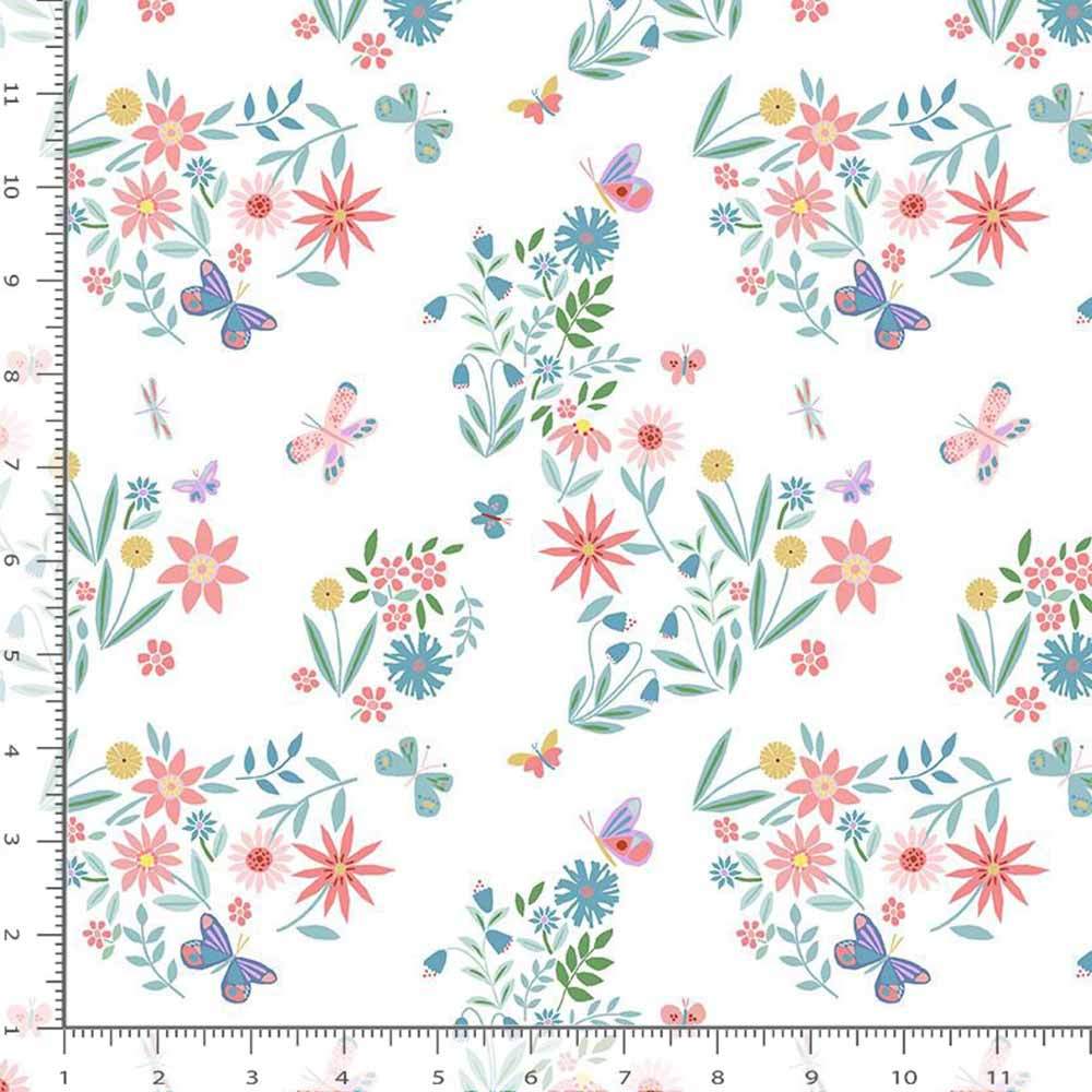 Dear Stella - Shimmer - Digital Print - In Bloom - White - Yardage
