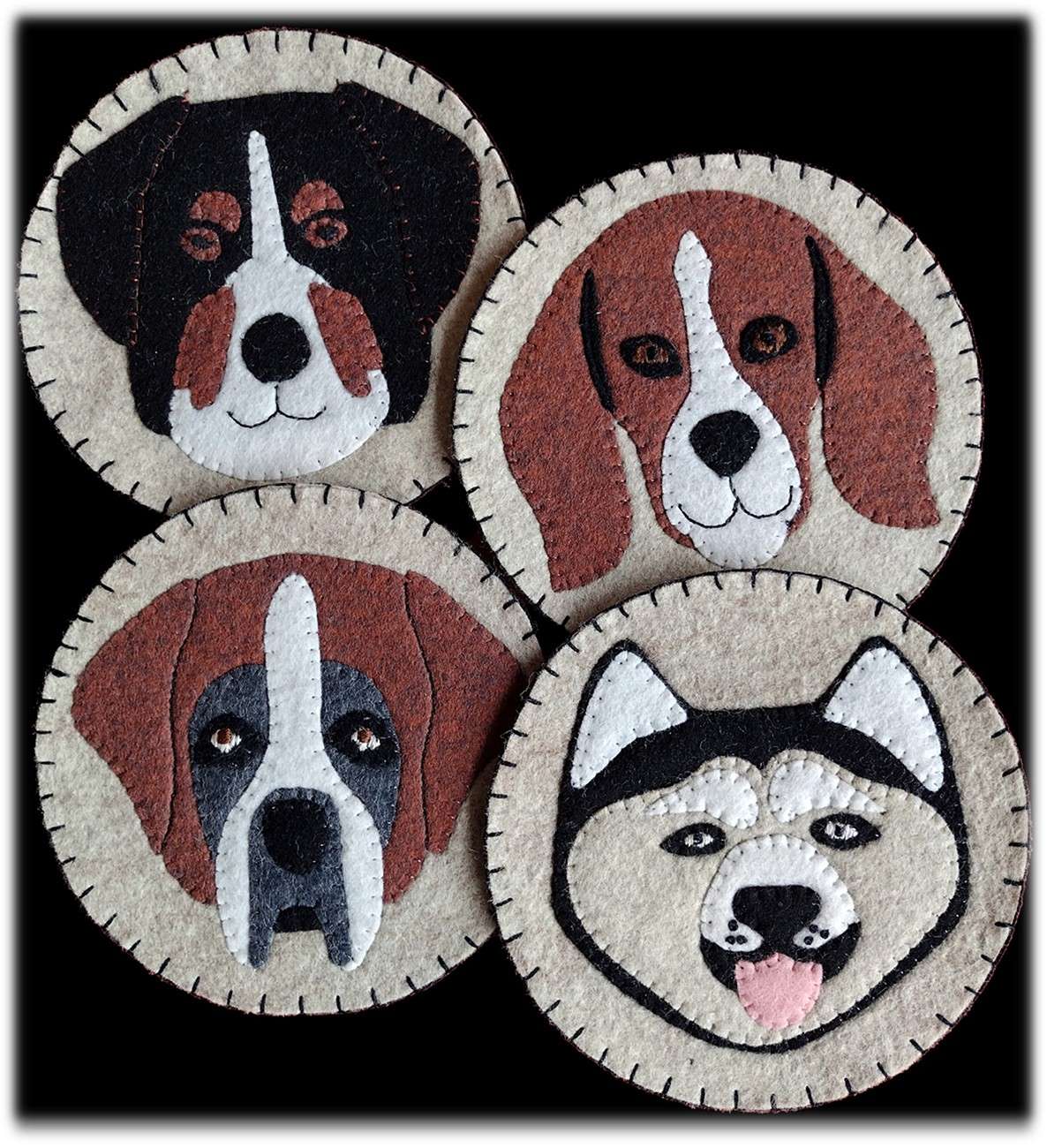 Attention all dog lovers. The dog coasters kit is a set of 4 coasters. The kit includes the pattern and templates as well as all woolfelt and floss required to make the coasters. Each coaster is approximately 5” in diameter. Colors are Sandstone, black, rust, charcoal, and white. These adorable coasters will add charm to your collection. They can also be used as ornaments. This is a complete kit.