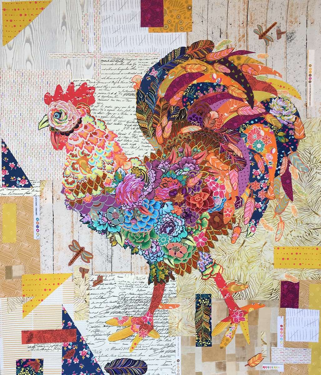 Doodle Doo Rooster Collage Quilt Pattern by Laura Heine