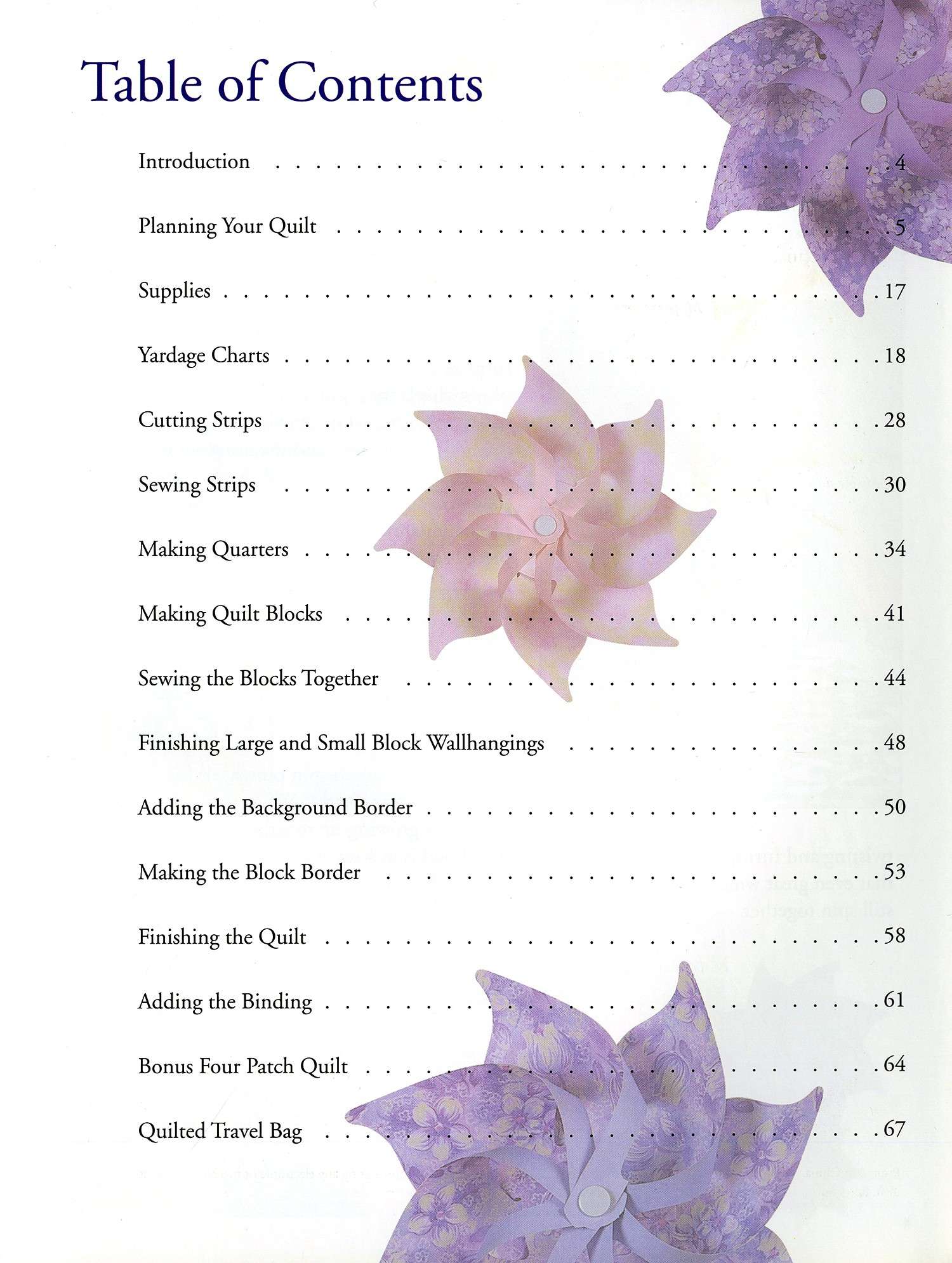An easy strip method for making pinwheel blocks, with no squaring up blocks or trimming necessary.Pinwheels are made in small 7" blocks or larger 11" blocks.This book contains quilt sizes from wall hanging to king.