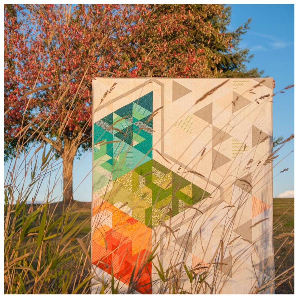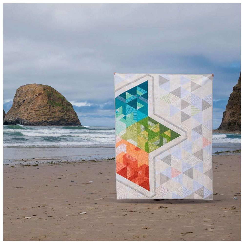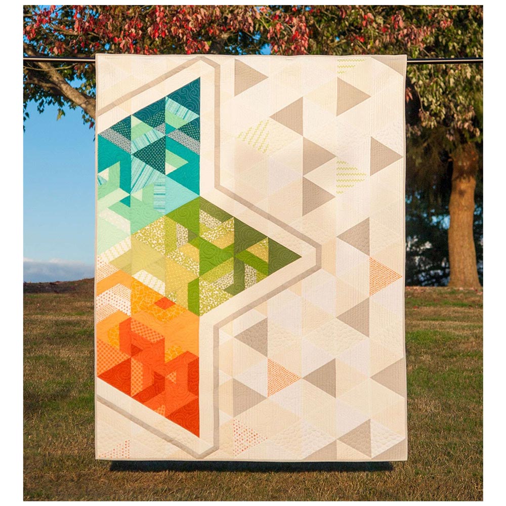 This cheerful modern quilt is a great stash buster! Use up all those fat quarters and stray 2-1/2in strips you have laying around. Entirely strip pieced, this quilt is easy enough for the confident beginner or a quick weekend retreat project. The colors grade from light to dark so the star looks like it’s bursting. This quilt was designed with kids in mind; jazz up their bedroom or change up the colors and make it patriotic!