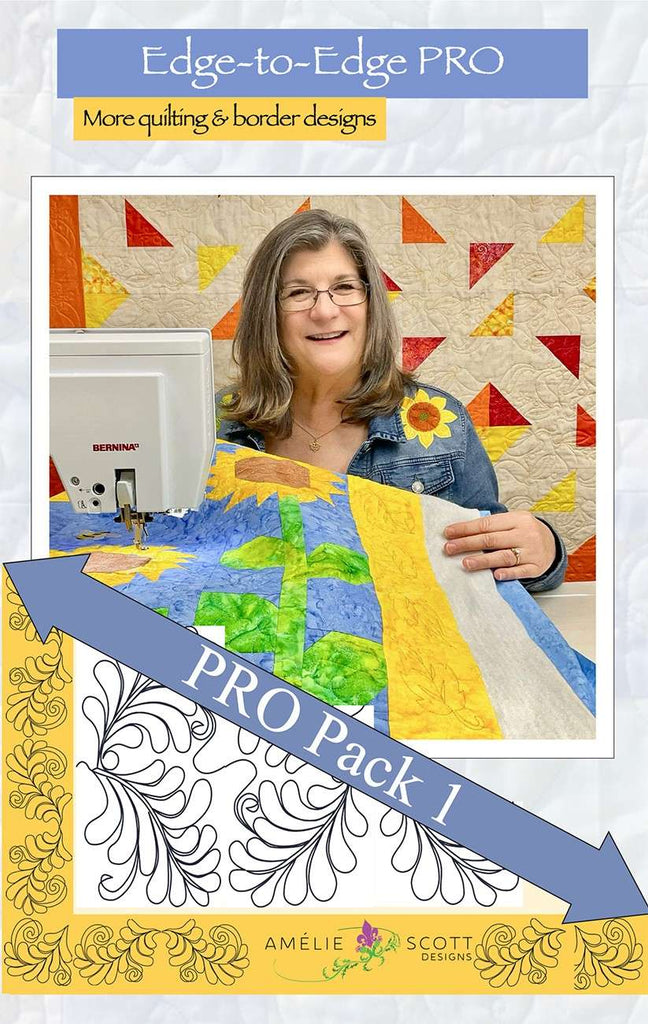 More quilting, border, & cornerstone designs! Edge-to-Edge PRO Pack 1 provides new designs for use with the techniques and Embroidery Tool Shed software from our Edge-to-Edge PRO book. These body, border, and cornerstone designs are delivered in c2s format, so that you can resize them with perfect stitch length, then save to your machine format. This PRO Pack includes 15 FULLY resizable designs, in 5 design sets.