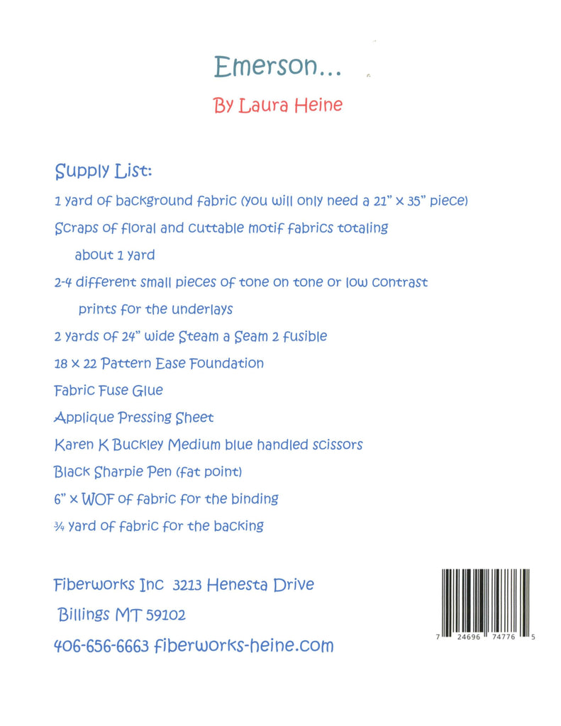 Emerson puppy collage pattern is a great beginner collage pattern. Includes full sized pattern and step by step color instructions on how to complete the quilt. Finished Size: 21 inches x 35 inches. Fabric not included.