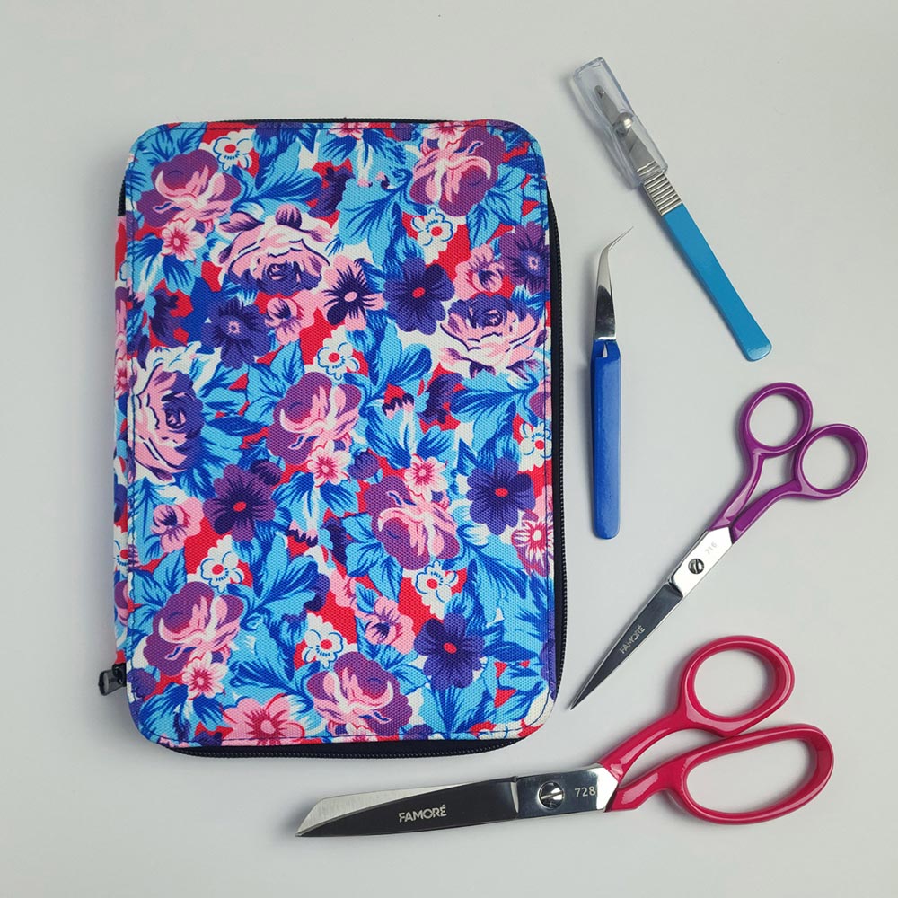 Famore's Floral Pattern Sewing Kit, a charming set that combines functionality with style. This kit includes: 8in Razor Edge Fabric Shears: Cut through fabrics effortlessly with these razor-sharp shears, designed for precision and durability in every cut. 6"" Straight Trimming Scissors: Trim fabric edges with precision using these straight trimming scissors, perfect for trimming fabrics. Surgical Style Seam Ripper: Seam rip with ease using this surgical-style seam ripper, complete with three replacement blades for long-lasting use. Opposable Curved Tweezers: A twist on a traditional tweezer. You squeeze to open this tool allowing you to thread needles with ease. You can grab and hold threads without applying constant pressure. With its floral pattern design and versatile selection of tools, this sewing kit is a must-have for any sewing enthusiast looking to add a touch of elegance to their crafting collection.